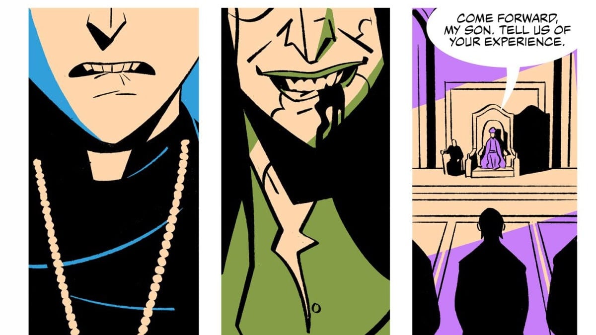 Matthews’s art complements this approach well, favoring a kind of clear line style that accentuates body language and the parts of the scenery that more directly impact the story. This helps make each priest feel distinct and easy to tell apart. Shades of The Expendables are noticeable in this regard as the priests all look like war-weary veterans that display the necessary roughness the job demands.