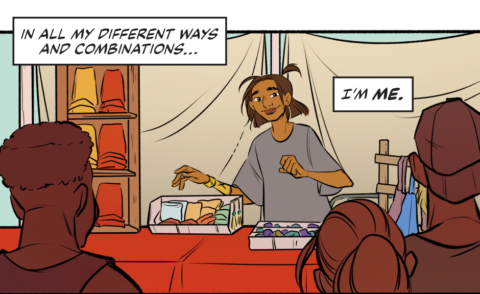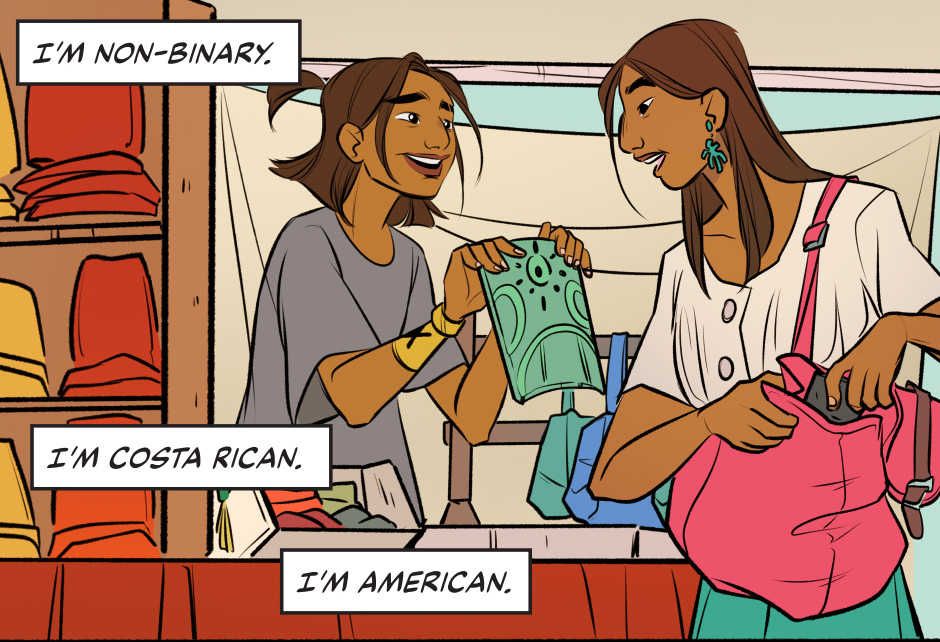 Naomi has never felt like they knew where they belonged, caught between their Costa Rican roots and American life. At a street festival where Naomi is embarrassed by family members and friends, they retreat into a surreal world inside their mind, confronting some old magic, finding the value of a multifaceted identity, and gaining a miraculous new power!