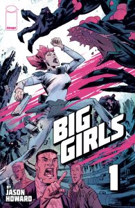 When men become giant monsters hellbent on destroying the world, only girls can stop them—BIG GIRLS. Meet Ember—she writes poetry, loves to read, and she’s a 300-foot-tall full-time monster killer! She and the other big girls are all that stand in the way of our world’s complete annihilation! Critically acclaimed artist JASON HOWARD (TREES) takes full creative control as the writer and artist of a tale that’s a cross between JOHN WICK and GODZILLA by way of HBO’s GIRLS.