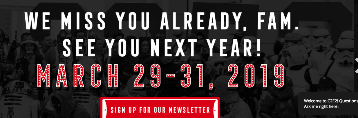 Washington DC’s Awesome Con is another show that moves around. Last year it was in June 16-18th. This year it got moved to the dreaded Easter slot, March. 30-April 1. And in 2019 it will be April 26-28.