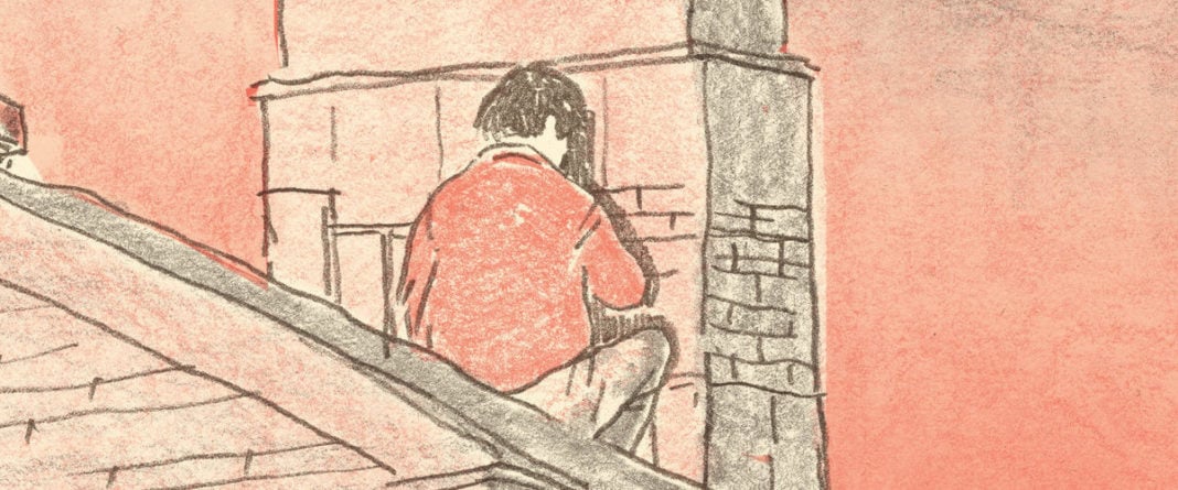 In creating this portrait of Ipswich — or more precisely, of his life in Ipswich — Ankeny several different approaches. Some are observances from the window of his studio when he captures various people in private, often contemplative moments. He also observes people from outside his studio, though, postulating on what their story might be or noticing particular quirks that could hint to wider stories. Ankeny relates interaction with local people, typically curious interaction that he walks away from with more questions than he entered with. And then there are the quiet moments, sometimes slices of everyday circumstances in total silence, other times evocations of encounters with nature accompanied by Ankeny’s poetic impressions. There are also moments of Ankeny’s personal life that provide insight to his concerns, particularly about his son, and also about his relationship with where he lives.