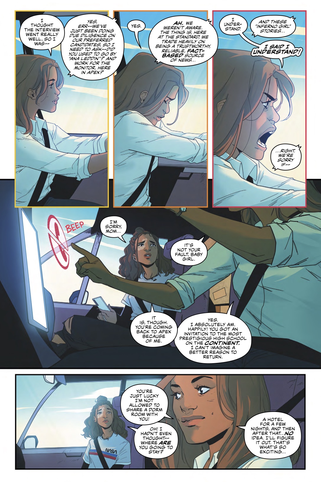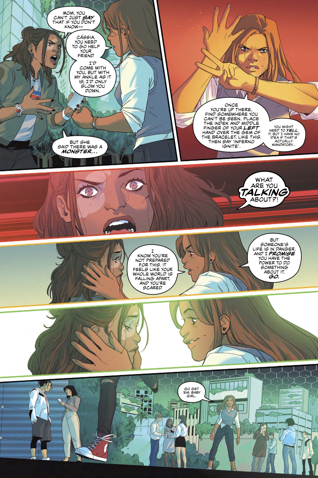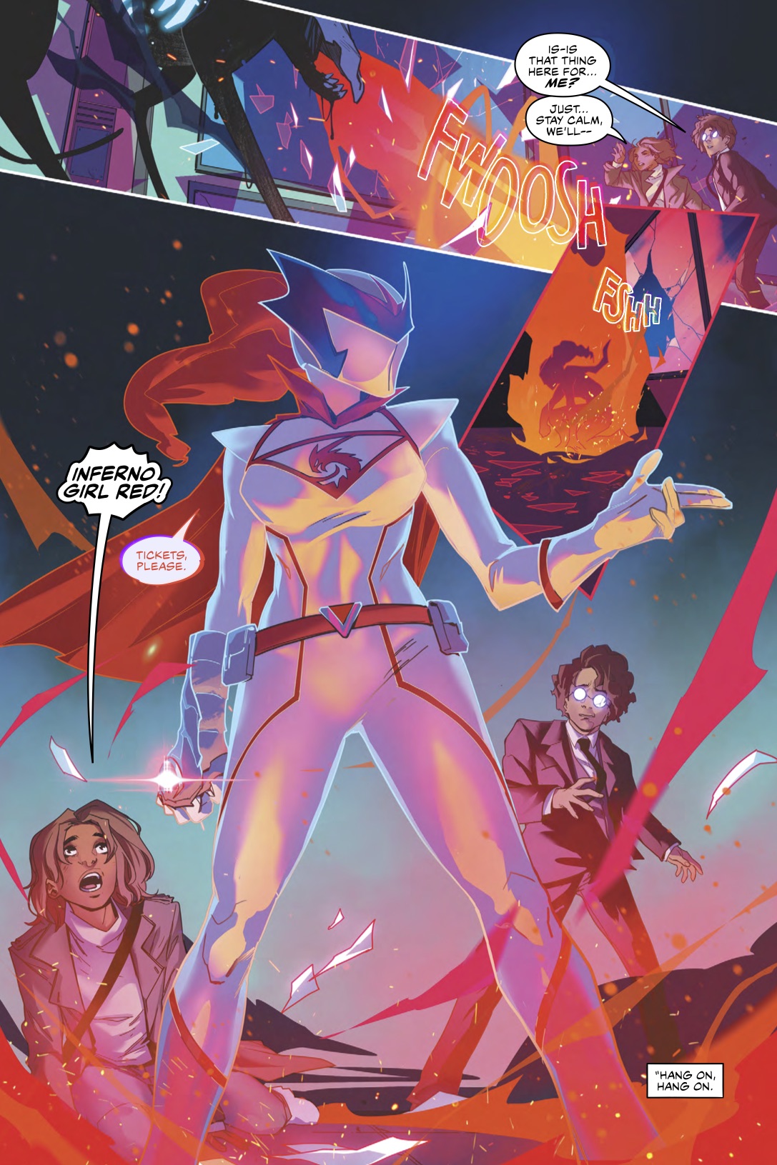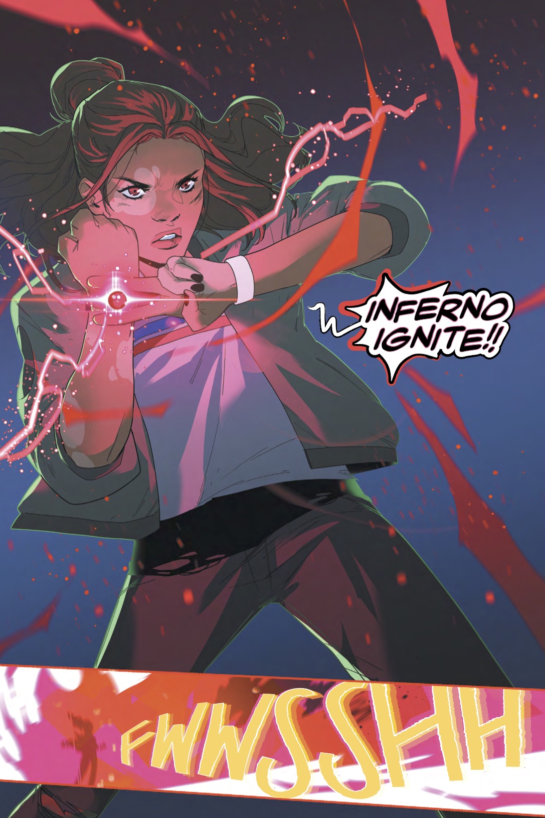 When her new home of Apex City was ripped out of existence and cast into darkness, Cássia Costa had to embrace an ancient power to become the legendary hero INFERNO GIRL RED. She rose to the challenge, pushing herself farther than she ever thought possible – but though Cássia protected the city from its first major threat, it cost her dearly. Now, still reeling from a heartbreaking loss, Cássia must forge a relationship with a new mentor, and expand an unlikely team – because the consequences of her previous “victory” have come back to haunt her, and a villainous duo is on the rise! A fraught potential romance beckons, a long-held secret threatens to be revealed, and an unimaginable choice could see Apex City left defenseless! Can Cássia navigate it all… or even survive it all?
