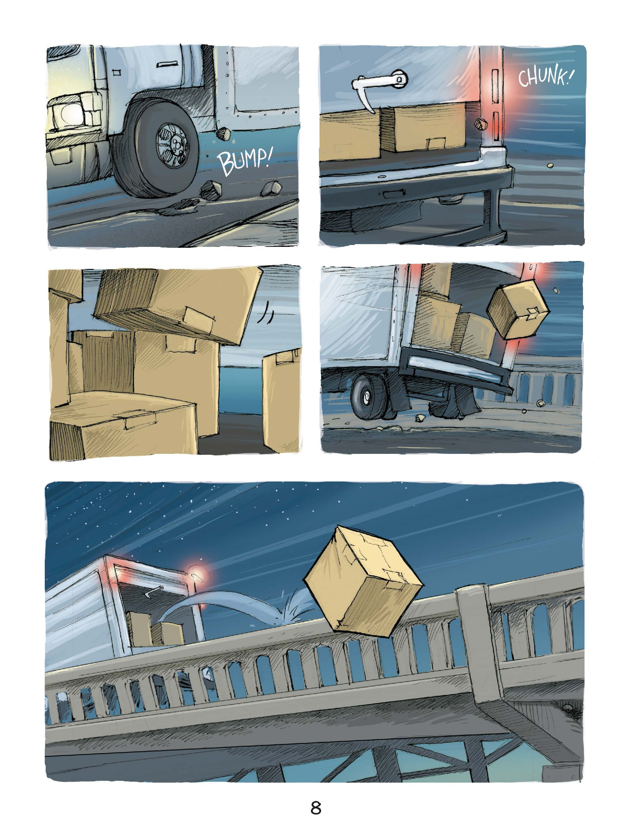 The format was a little larger than the Zita books and the page count just a bit shorter. With the larger page size I ended up doing a lot more ink wash on the pages and adding a bit of depth in that way. This book is also set, very consciously, in my own general area. Definitely all within a few miles radius. So for this book (unlike, say Zita the Spacegirl) I was able to take walks with my camera and sketchbook and sketch some of the locations right from life. There’s an old broken down jeep in the book that I literally sat in front of and drew and later scanned and placed that same drawing into the book. It was all very rewarding and I think it added something to the sense of place. At least I hope!
