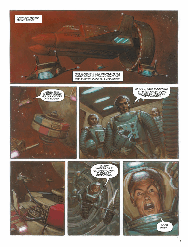 Early last year it was revealed that the series would return with critically acclaimed 2000 AD creators Michael Carroll (Dreadnoughts) and artist Tom Foster (Judge Dredd: The Penitant Man) taking on the herculean task of continuing the beloved British sci-fi strip. And, in deference to Laurence. even going old school – as Foster picked up the brush to give it that authentic hand-painted feel.