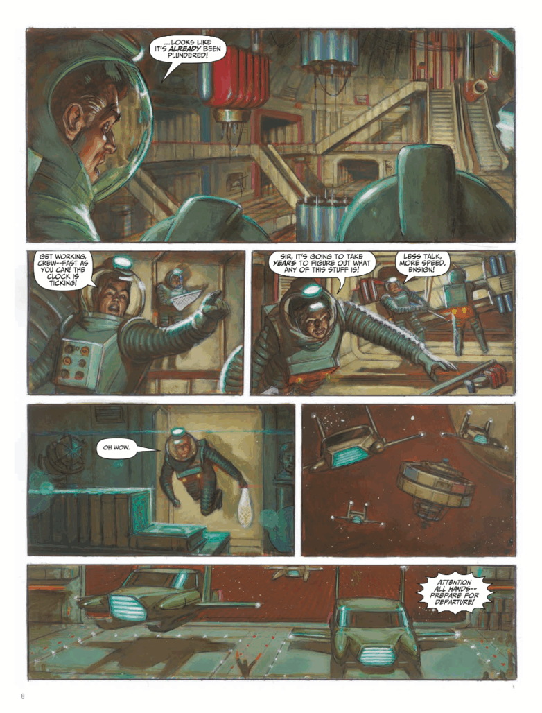 OP: I remember having a conversation with an artist before the pandemic, there wasn’t a contract on the table, and nothing was set in stone, but we chatted conversationally about the idea of a future Trigan Empire story when I was showing him the first proofs of the first Don Lawrence collection.
