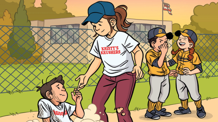KAPLAN: In Kristy and the Walking Disaster, Kristy starts a softball team: Kristy’s Krushers! Do you have any experience with softball and/or other sports? How did this experience (or lack thereof) inform your work on the adaptation? (I am more like Claudia, checking her nails in the stands).