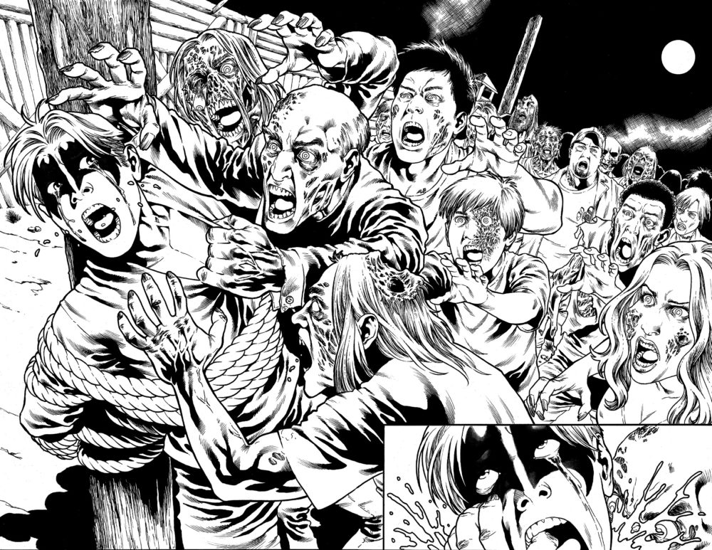 Sacks: We’re just getting fired up, so I’ve mainly been working with Rodney Buchemi, but I’m well acquainted with the others’ amazing work. When we get emails on a daily basis from Rodney with the art, I actually get goosebumps. The art is so stunning, the zombies so chilling, the action so visceral. Every panel, every page. It’s so detailed, you can see into the zombies’ rotting flesh into the rotting muscle of their cheeks. I think readers are going to be blown away by how great this looks.