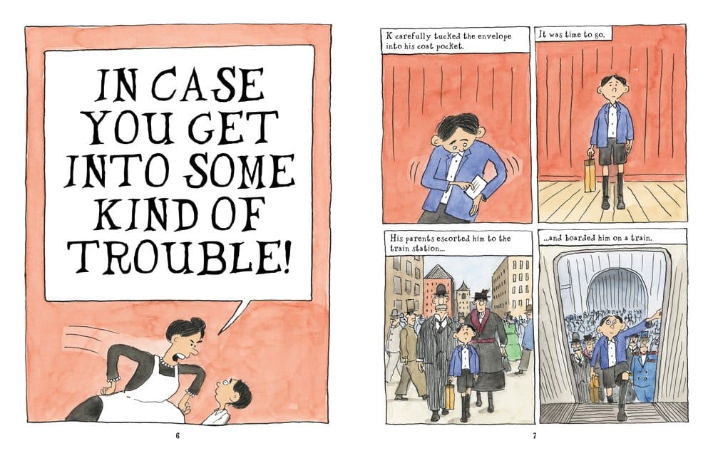 PEREZ: Yeah, it’s very interesting because the concept of the story takes two exciting turns. One in that it turns autobiographical in the sense that you’re talking about your experiences, and the other in that it aims to be a children’s story that makes Kafka’s stories more approachable. I was wondering how you came about making that choice to be like, “Hey, these anxious stories are probably good for somebody young and would like to deal with that kind of anxiety?”