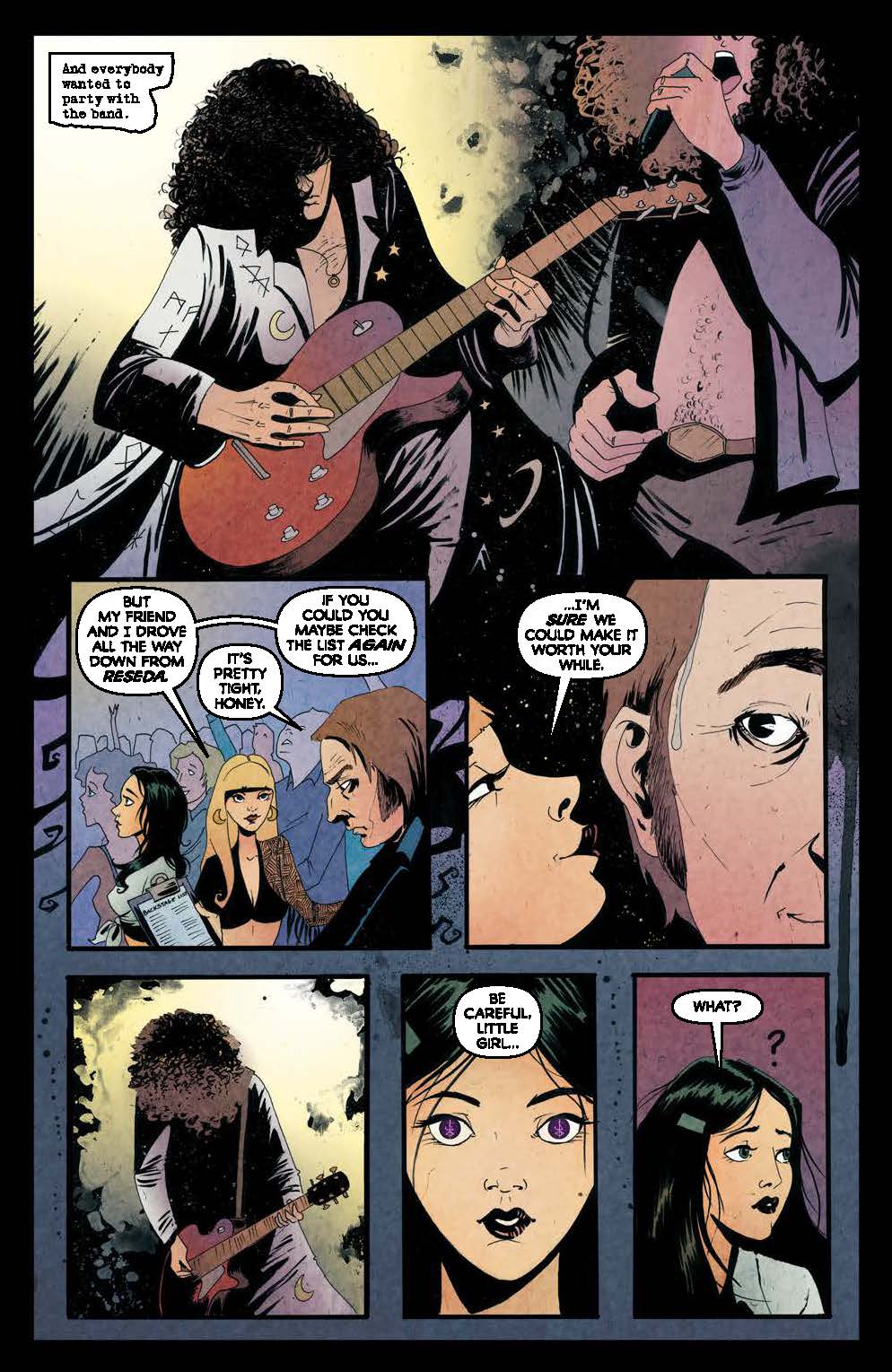 Hutchison-Cates: There’s a lot of hair and a lot of spandex in the collected edition. And a really hot chick. So, you know, all the good stuff. There are also some good easter eggs if you are a real rock-n-roll nerd (like Joe.)