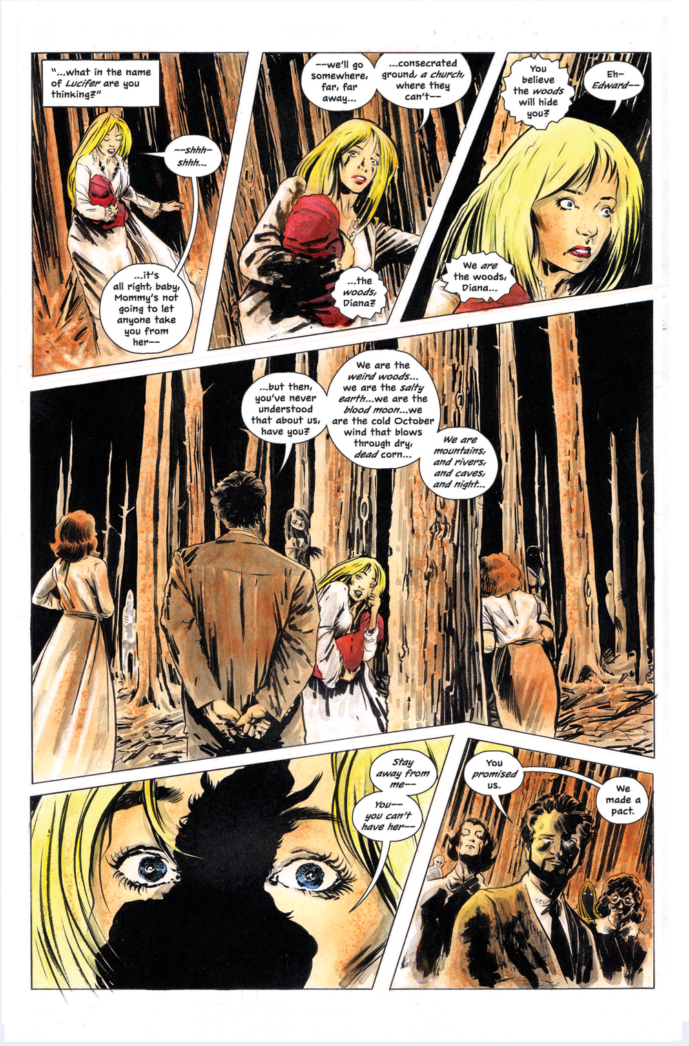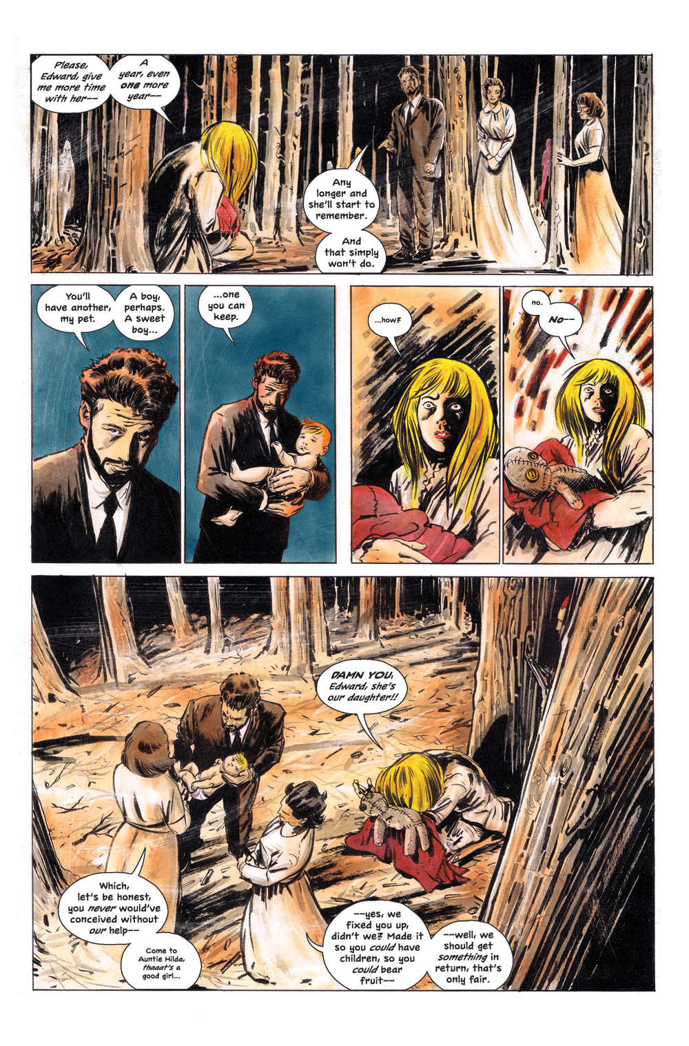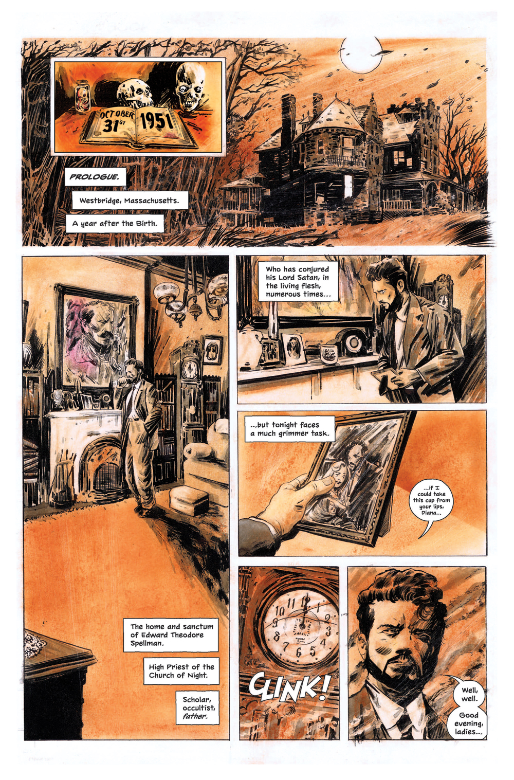 Steve: What’s been your approach to the series, as artist? Are there any influences on your storytelling from film, literature, anywhere else? The preview I’ve seen suggests a sort of realistic horror aesthetic, like something similar to Rosemary’s Baby?