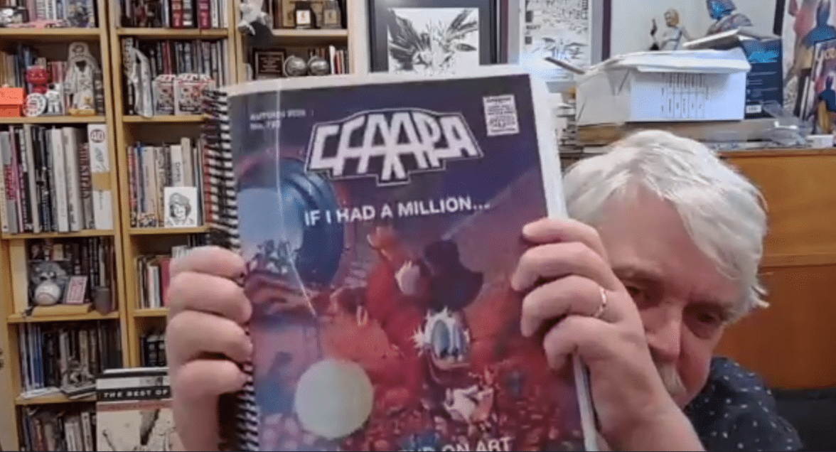Dunbier: There were two distinct moments. The first one was in 1995, I was a member of the CFA APA. An APA is the ultimate nerd publication. It’s Amateur Press Association. It is literally a hand bound book. We used to mail contributions. Now we email them to a central collator. They put together this massive volume. I just got this in the mail. This is the newest issue of the APA.
