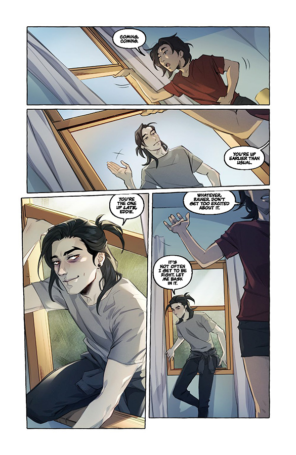 Son M: What’s better than a devil you don’t know? Small towns and labels go hand in hand, and Rainer is a representation of surviving that isolating living experience. He’s a great foil to Eddie, her best friend who helps her along on this hunt for the truth. At some point, between the two of them, you’ll start to question who’s the actual devil in their relationship.