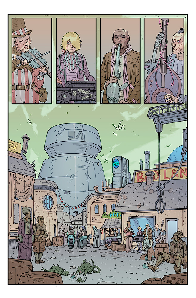 GS: The best part is design, and it’s just been an option to constantly design little pieces, like Shara’s home world that you see just for a second. That kind of thing is all over the comic, which is a real treat.