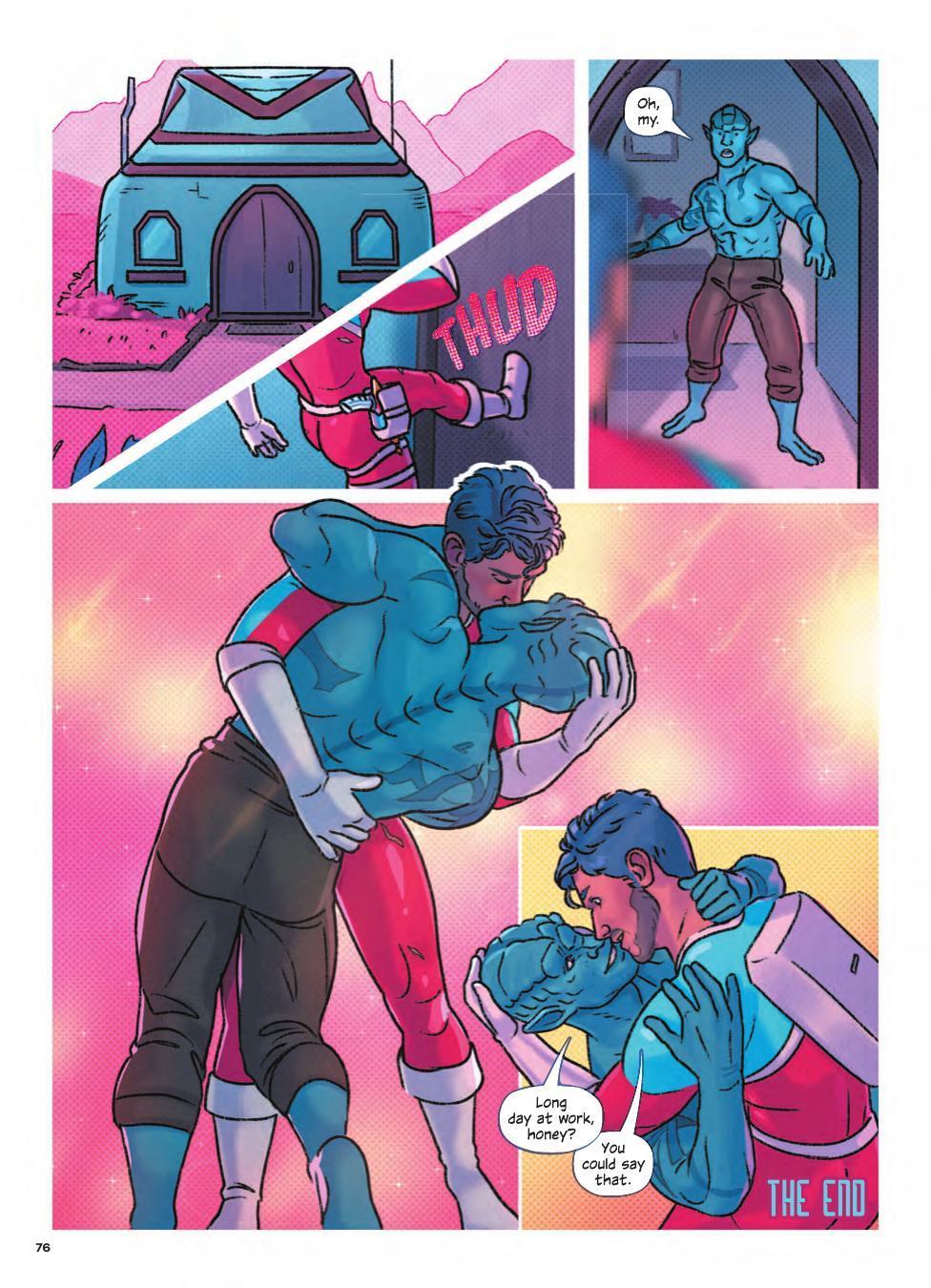 You can feel that excitement throughout the stories – they feel different than the usual mass-market fare. “Look at how many queer stories are being done by other comic companies… and they’re all kind of the same. It’s always about coming out and never about the things which gay men are actually experiencing,” Glass said. “There’s so much more to the queer experience than coming out.”