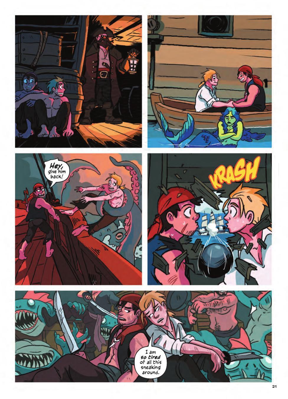 Gerlach agreed, “As I kid, I think I’d have got bored of queer stories about introspection and queer identity. I wouldn’t have got bored of stories about gay pirates that happened to also be about queerness. That’s what I want to do with the vast majority of my work; tell stories that are fun adventures, where the characters just happen to be queer. Our stories don’t have to be entirely about our identities. We deserve to be pirates, or wizards, or adventurers, not just sad introspective teens.”