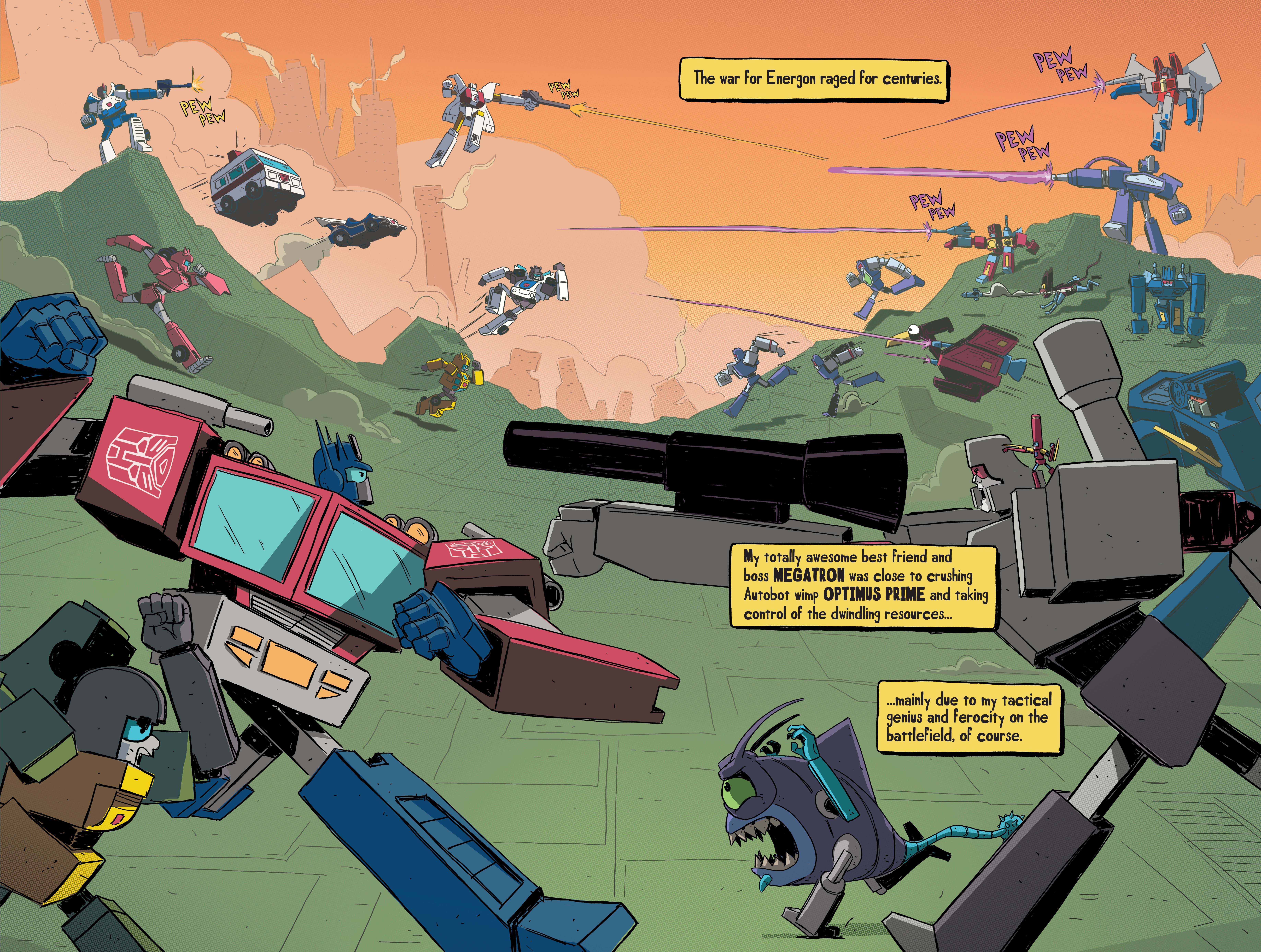 Taimur Dar: The Transformers franchise has some iconic characters like Optimus Prime and Bumblebee that are household names. This Worst Bot Ever graphic novel features some characters I never knew existed like Gnaw the Sharkticon. How did you select the Autobot and Decepticon characters and did you have free rein?