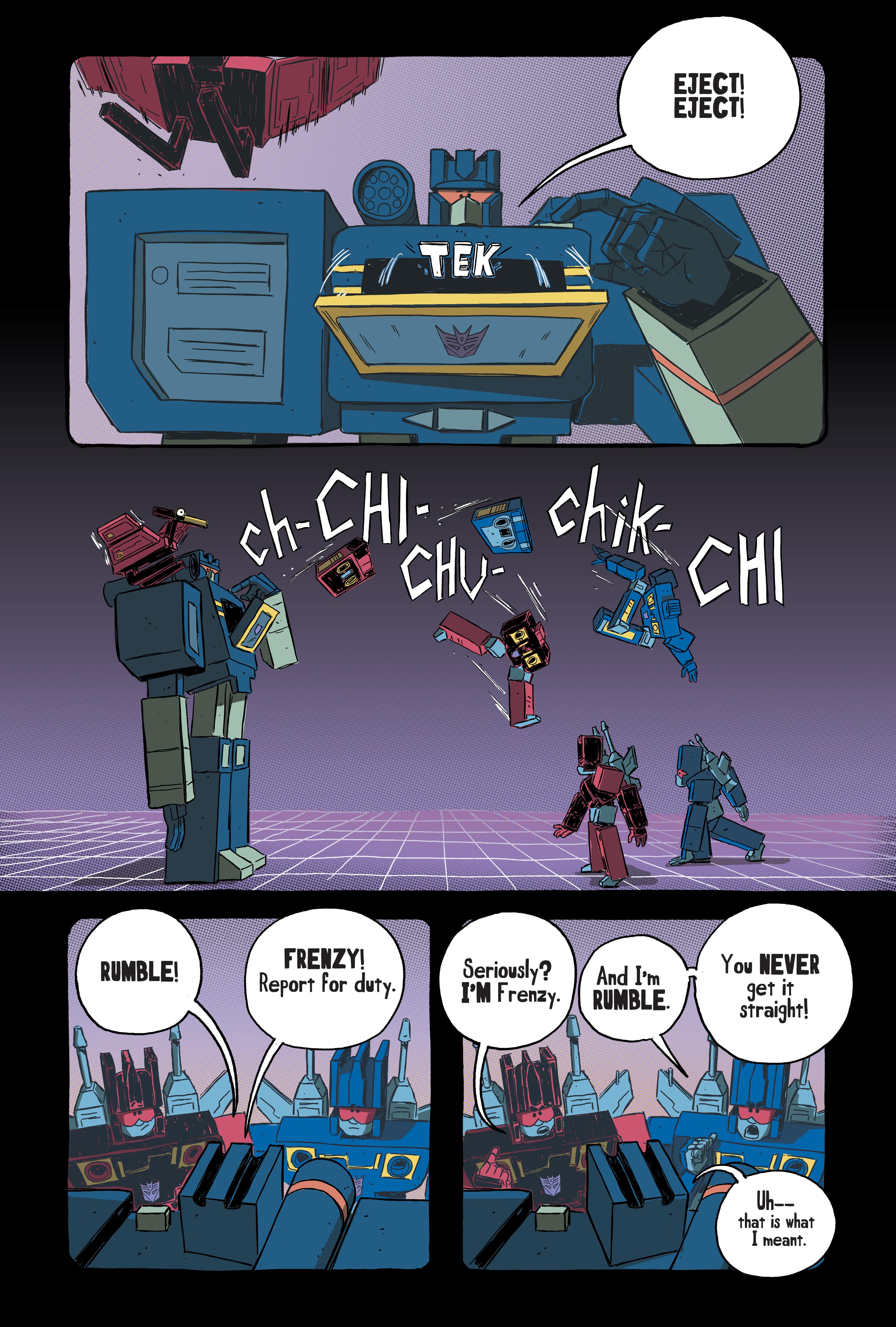 Brian “Smitty” Smith: I think he is confident to a fault but he does possess some level of empathy. For instance, his best is the blender in the breakroom in our story thinking that the blender is an actual Transformer but it’s not. He just thinks he’s very quiet. A lot of the book is about him being humbled and learning humility as part of his journey. I definitely wanted him at a starting point where he’s firmly a Decepticon and thinks he’s the baddest of them all. He thinks everyone loves him. But he quickly gets a reality check on all fronts.