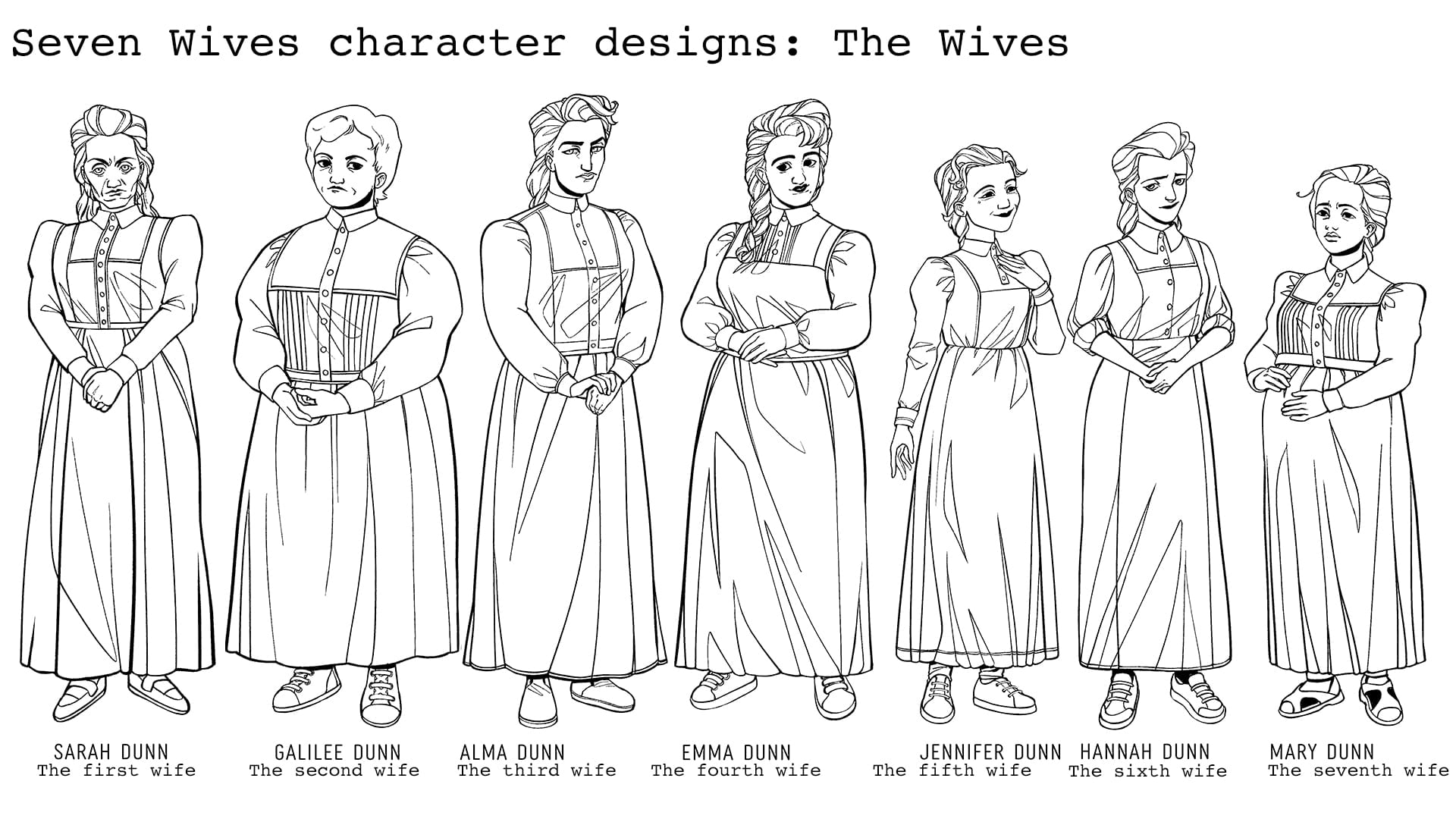 Tunnell: You will! I think it’s a fascinating thing to explore. I’m personally not a particularly religious person in my own life, but I’ve always found the peace and strength folks can find in faith–whatever form and religion it takes–something special and so uniquely human. For the cast of Seven Wives (outside of our detective leads), it is a tricky thing because they have spent their entire lives entrenched in the dogma and fervor of Matthew’s vision of faith. When you spend decades or longer in an environment like that, it’s hard to completely ditch it. So even if some of the wives may find their commitment to the Dunn gospel wavering, finding their own interpretation of the lessons they’ve had hammered into their heads and flesh might be a necessity to survive.