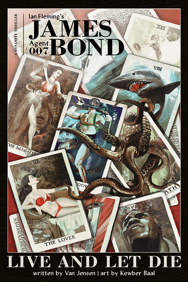 James Bond: Live and Let Die is getting a graphic novel adaptation this fall thanks to Dynamite Comics. Based on Ian Fleming’s second novel, this adaptation follows the critically acclaimed Casino Royale with writer Van Jensen (Flash, Green Lantern Corps) and art by Dennis Calero. Jensen returns for writing duties along with Kewber Baal (Army of Darkness, Jennifer Blood) on art and his partner Schimerys Baal (KISS) on colors. Fay Dalton (Vampirella) offers up a sleek noir-inspired cover.