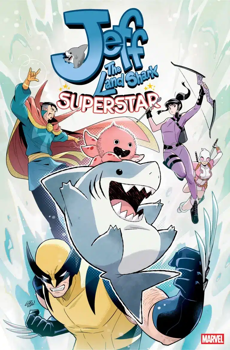 It’s Jeff the Land Shark’s world, and we’re just living in it. The beloved Marvel superstar is returning for another limited series at the House of Ideas, one where the four-legged shark becomes a celebrity of intergalactic proportions. Thursday, Marvel announced Jeff the Land Shark: Superstar a five-issue limited series from character co-creator Kelly Thompson and rising star artist Tokitokoro.