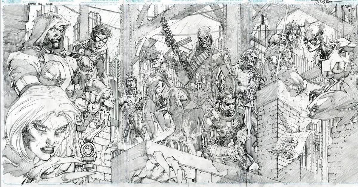 As a follow up, Lee posted the pencils for two wraparounds for Batman #163, noting that “I love how physical comics can offer an immersive experience that digital just can’t replicate, especially with gatefold covers that bring an unexpected surprise.” This also served to remind us just how much work he’s putting in on the project. And yeah, we probably all knew that H2SH was gonna ship late, but he’s be grateful for Lee’s improved health so that he can stick around and make lots more comics.