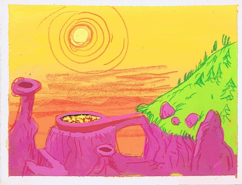 I did a drawing myself, showed it to John the next day, and he says, “That’s what I wanted all along!” And, of course, the first thing I thought was, “I could’ve paid myself the $10,000 for one drawing.”