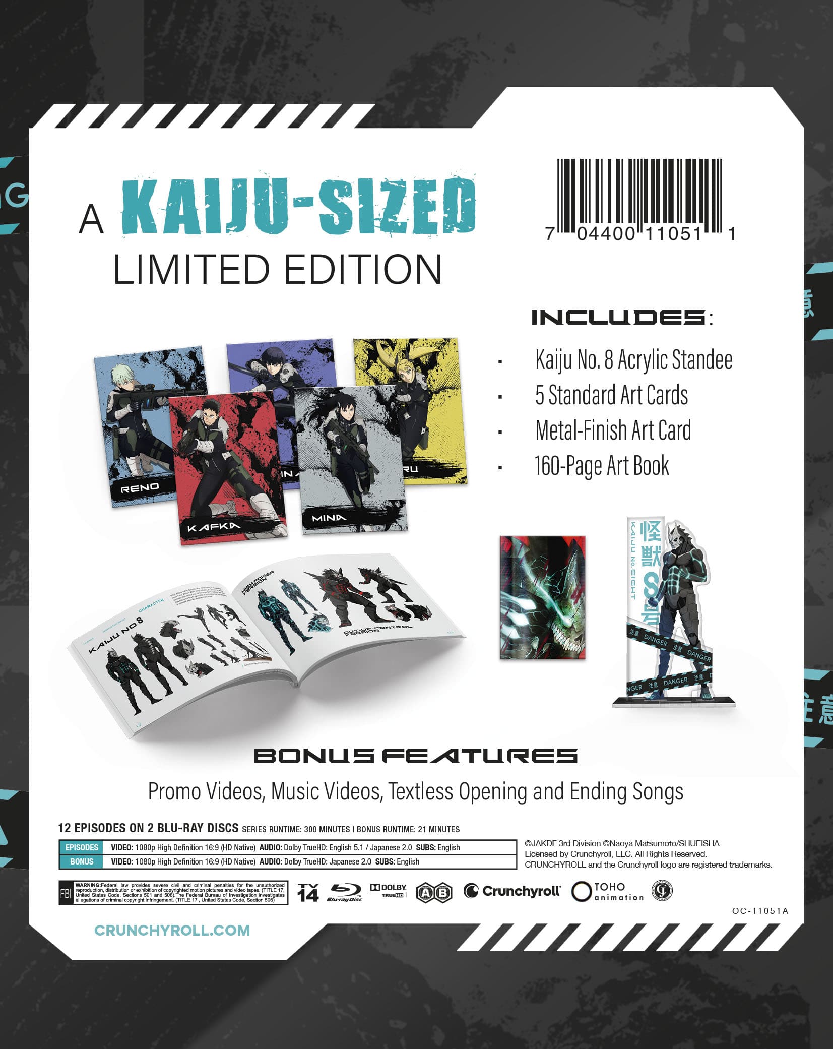 Kaiju No. 8 Season 1 Blu-ray and Limited Edition set release December 9, 2025. Pre-orders are available through the Crunchyroll Store and other retailers.