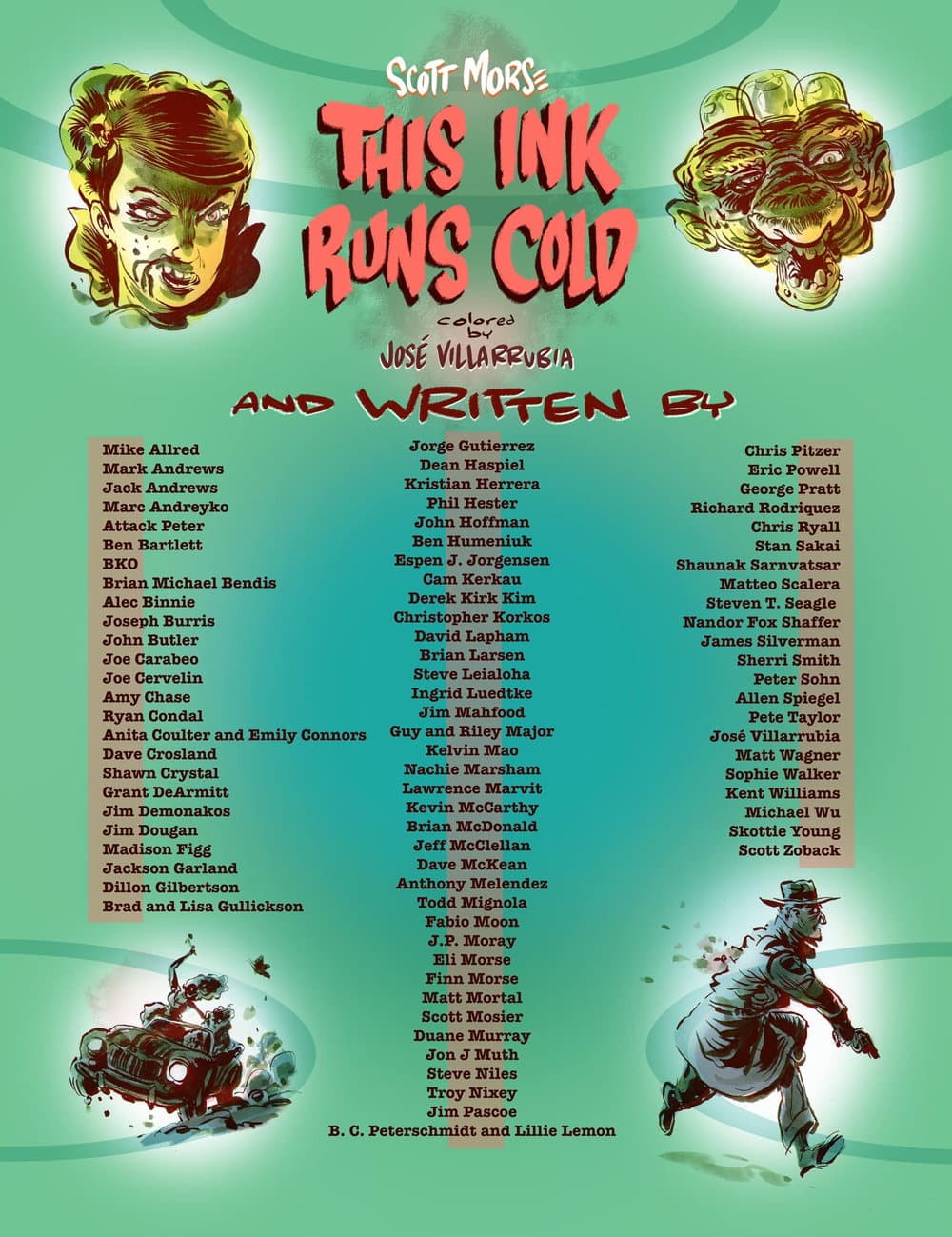 Credit where it’s due. Full roster. Not in print order. So, so amazed that this pile of people were able to find the time and energy to make this thing possible. There are old friends and family, colleagues, mentors, and legends, side-by side, page after page. Comicsmakers, filmmakers, TV makers, editors, journalists, students. It’s a startling, kind-hearted murderer’s row of heroes.