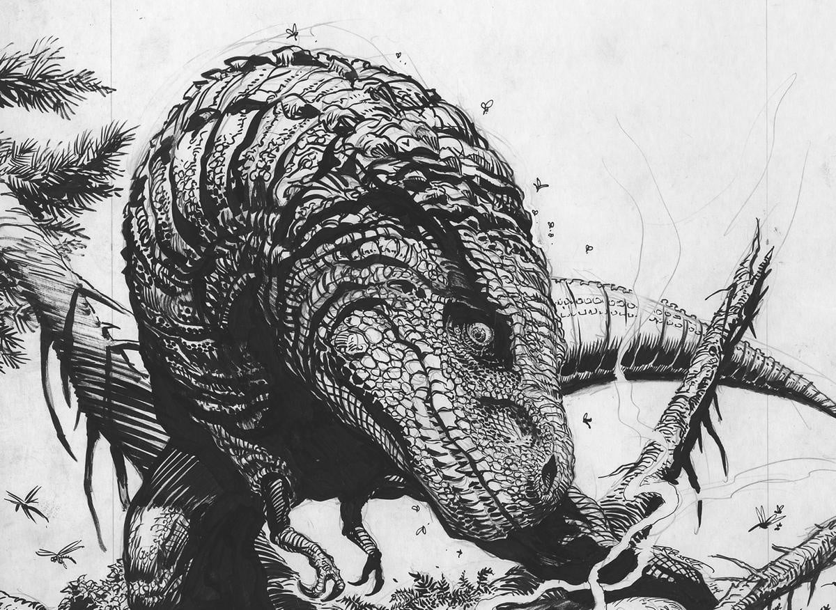 Tyrant is the autobiography of a Tyrannosaurus Rex and his struggle to survive, featuring Bissette’s gloriously rendered Cretaceous period landscapes and epic storytelling that has earned it cult status. The title was originally published in black and white on newsprint from Bissette’s own Spiderbaby imprint, and was nominated for an Eisner Award in 1995. It appeared during a difficult period for comic book retail and distribution and never achieved much commercial success, but those who saw and remember the book often wonder why it has not returned to print.