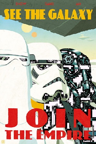 § Cliff Chiang drew a series of Star Wars posters in the style of old propaganda posters, and a limited edition will be on sale at SDCC. via Robot 6.