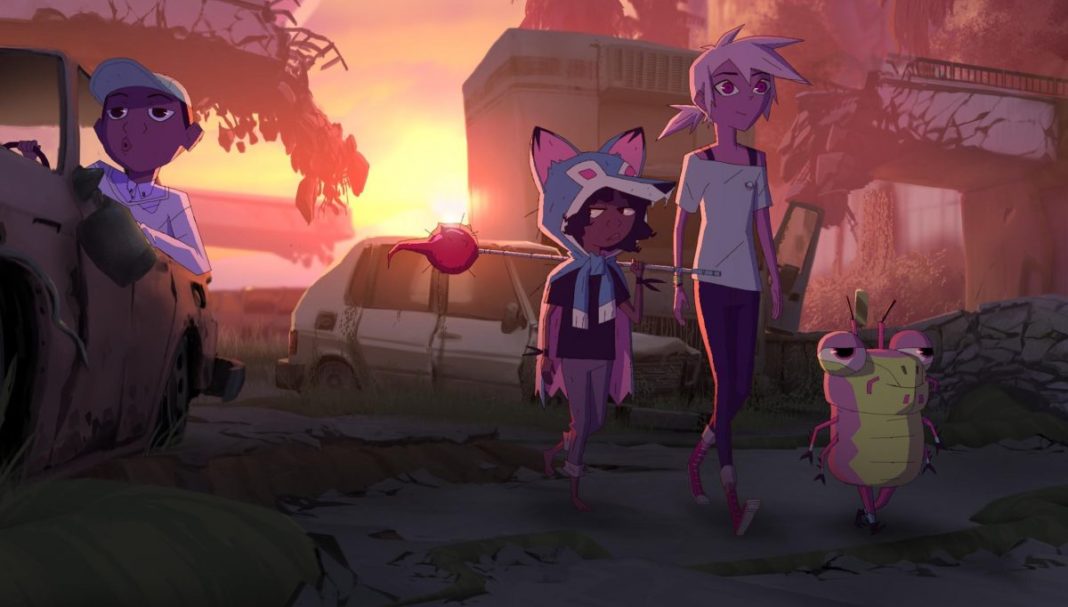 Kipo is a singing, monster-fighting young girl in a post-apocalyptic world. She was raised underground, with the majority of the population – the surface was crawling with beasts, after all. Luckily for Kipo, when she begins her adventure and scales upwards, she finds a fantastical setting filled with creatures that all want to eat her. But at least they’re adorable! Kipo eventually finds a group of survivor-pals to help her on the way through this “vibrant wonderland.”
