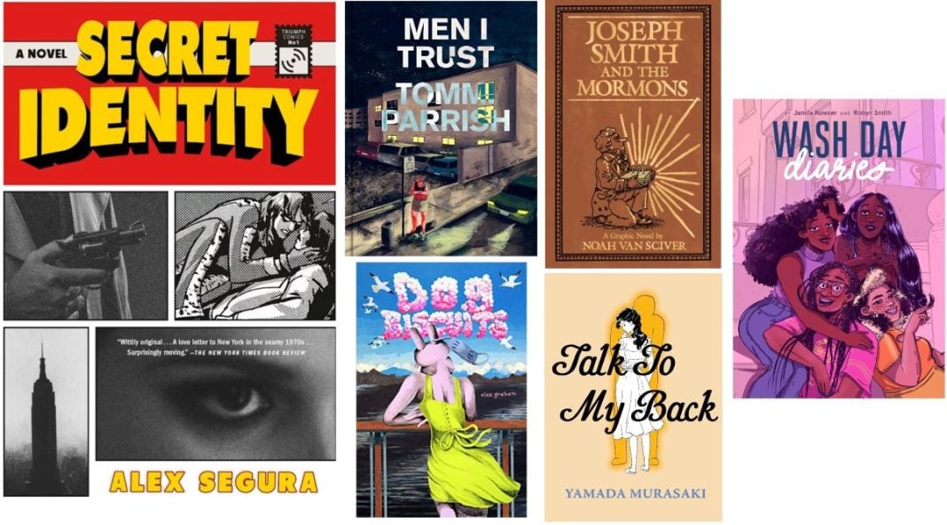 In Comics/Graphic Novels and looking by publisher, Fantagraphics leads the pack with two finalists – Alex Graham’s collected Dog Biscuits; Instagram webcomic and Tommi Parrish’s graphic novel Men I Trust. Drawn & Quarterly’s feminist alt-manga collection Talk to My Back, by Yamada Murasaki (translated by Ryan Holmberg); Abrams ComicArts adds historical biography with Noah Van Sciver’s Joseph Smith and the Mormons; and Chronicle Books comes in with Jamila Rowser and Robyn Smith’s Wash Day Diaries. A pretty eclectic mix.