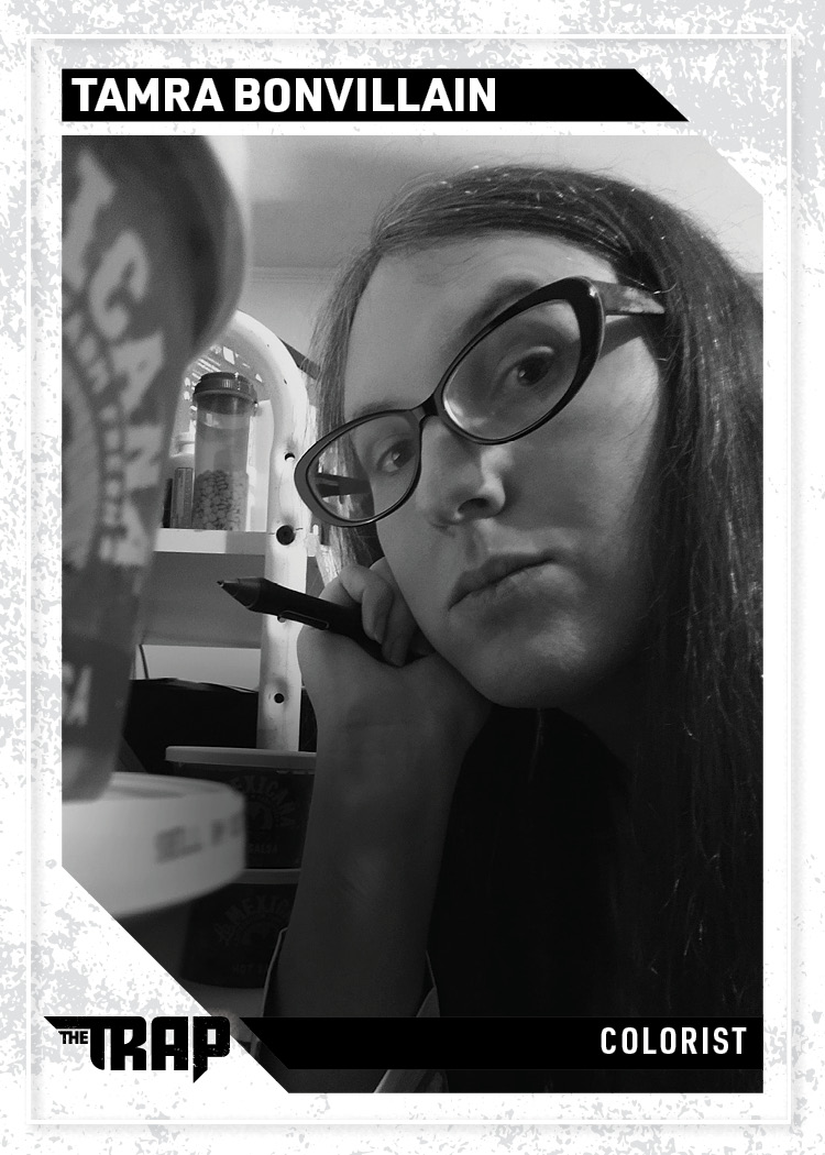 Tamra Bonvillain is a colorist who has contributed work to several series; Doom Patrol, Captain Marvel, Moon Girl and Devil Dinosaur and more. Her color work has been published at most of the major comic publishers such as Marvel, DC, Dark Horse, etc. She’s a graduate of the Joe Kubert School in Dover, NJ, and currently resides in Augusta, GA.
