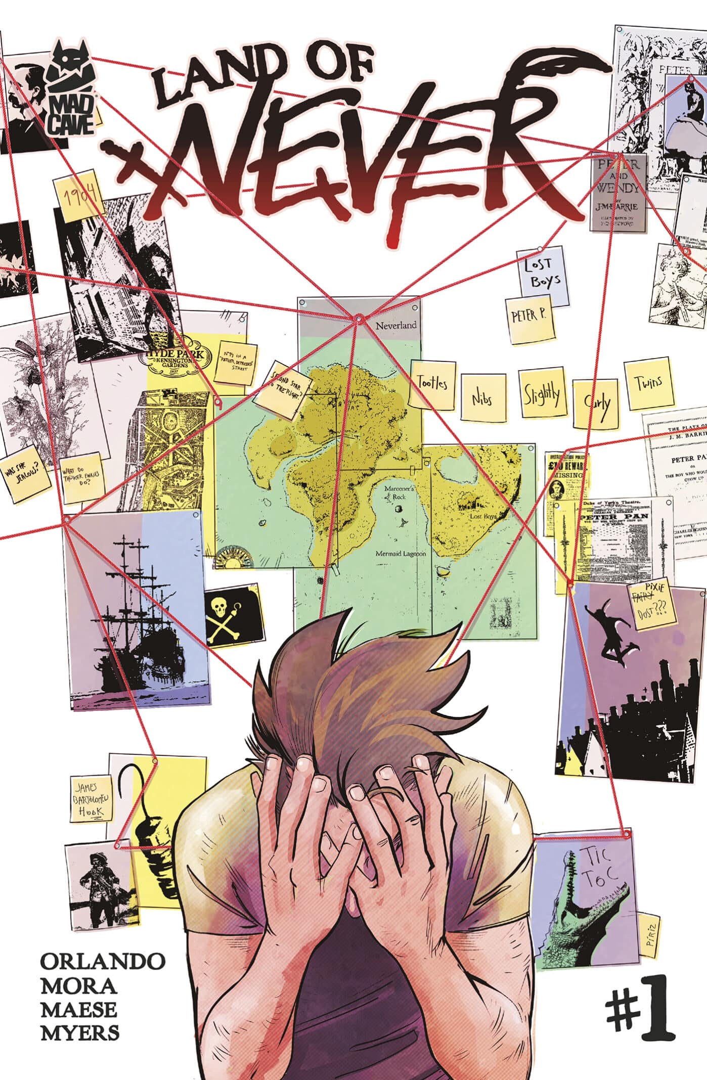 Mad Cave Studios has announced Land of Never, a twisted take on Peter Pan by writer Steve Orlando, artist Miguel Mora (Megadeth’s Death by Design), colorist Fares Maese, and letterer Micah Myers. The psychological thriller follows a disgraced former pathologist, who believes his missing daughter was kidnapped by a masked brute he briefly glimpsed, but is unable to prove it. Six months on, he learns from others with similar experiences that the culprit may be a cryptid known only as the Flying Man.