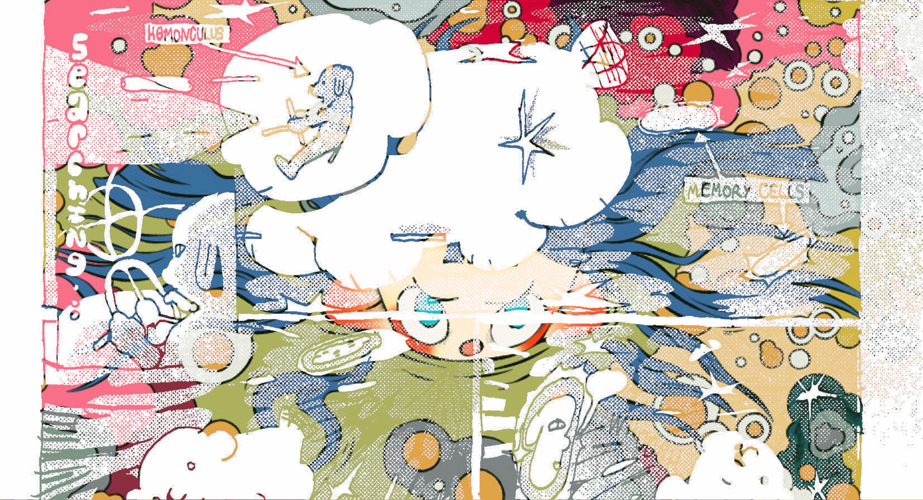 Going goblin mode so hard a mold starts to grow on her body is only the start of this misadventure. Not another cutesy aesthetic in contrast to body horror; the real rot is in the mind. Mother zooms in to the microbe level, where all the various growths hang out. A tiny mirror, weird self-imposed social structure by the germ who is desperate to be popular, needed, loved, chosen, special. Struggle between who mother talks to and who she doesn’t gets weird. Because mom is off: she’s nurturing the growing mold patch on her body like it’s her child. Inside her heart shaped eyes is an image of a butterfly’s wings being pulled off. Psychological horror, emotional abuse instead of biological spectacle. The stress in the chest for the one or two decent microbes caught between a wicked creator and a community of her emotionally numb sycophants.