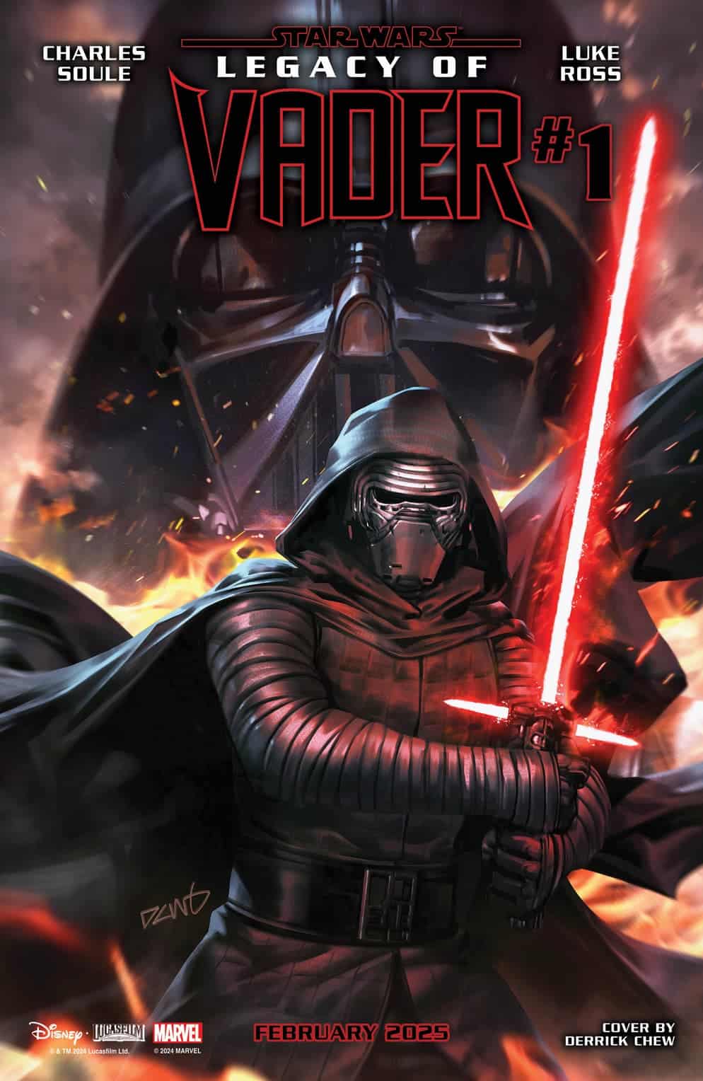 Legacy of Vader #1 will be released on February 5, a month before the start of Marvel’s other newly announced Star Wars ongoing, the prequel era Jedi Knights. Its debut will come five years after the release of The Rise of Skywalker, which concluded the sequel trilogy and Kylo Ren/Ben Solo’s story. The first issue will have a main cover by Derrick Chew, and variants by E.M. Gist, Karen S. Darboe, Ramon Rosanas, Annie Wu, and John Giang. You can check out Wu’s cover, and an interior preview below.