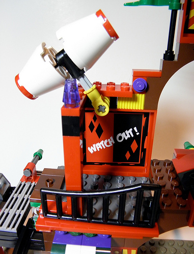 Lego have an interesting grasp on Batman continuity, in that they’ve decided to use both well-known and little-known references in designing this themed series. While most people know about Riddler and Joker, the presence of Harley Quinn suggests that the Batman cartoons were a big influence on whoever designed the sets — and the inclusion of Red Robin is really interesting. It suggests not only that Lego know about Jason Todd and Tim Drake, but are actually trying to appeal to their fans by offering them as characters alongside the more expected Nightwing or ‘classic’ Robin design. I’d also direct you to look at the weapon which Riddler is holding in this set, because IT IS A CROWBAR. In a Joker’s funhouse set. With Red Robin as one of the figures included.