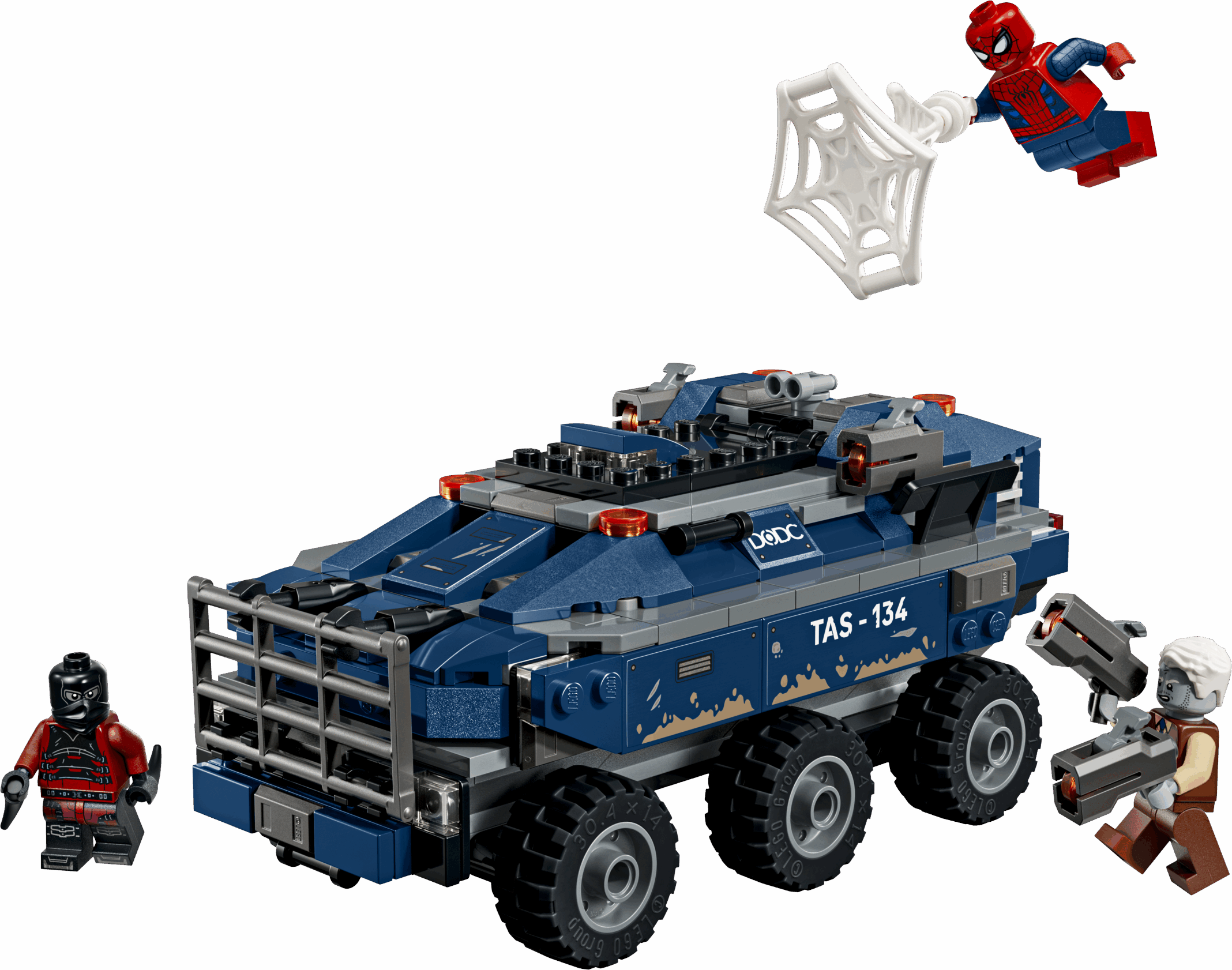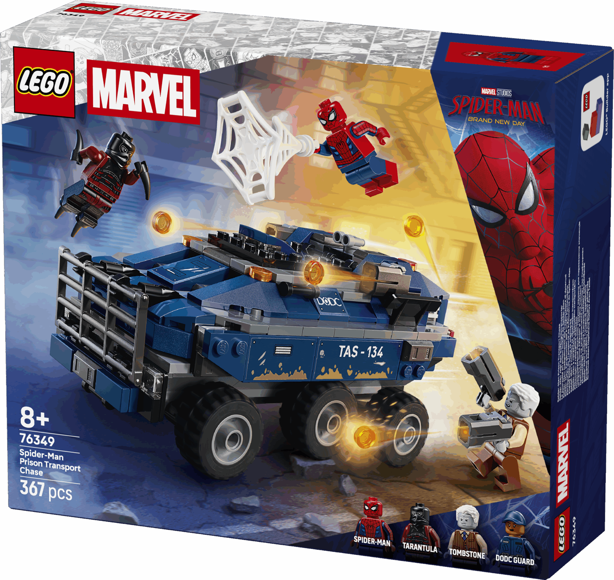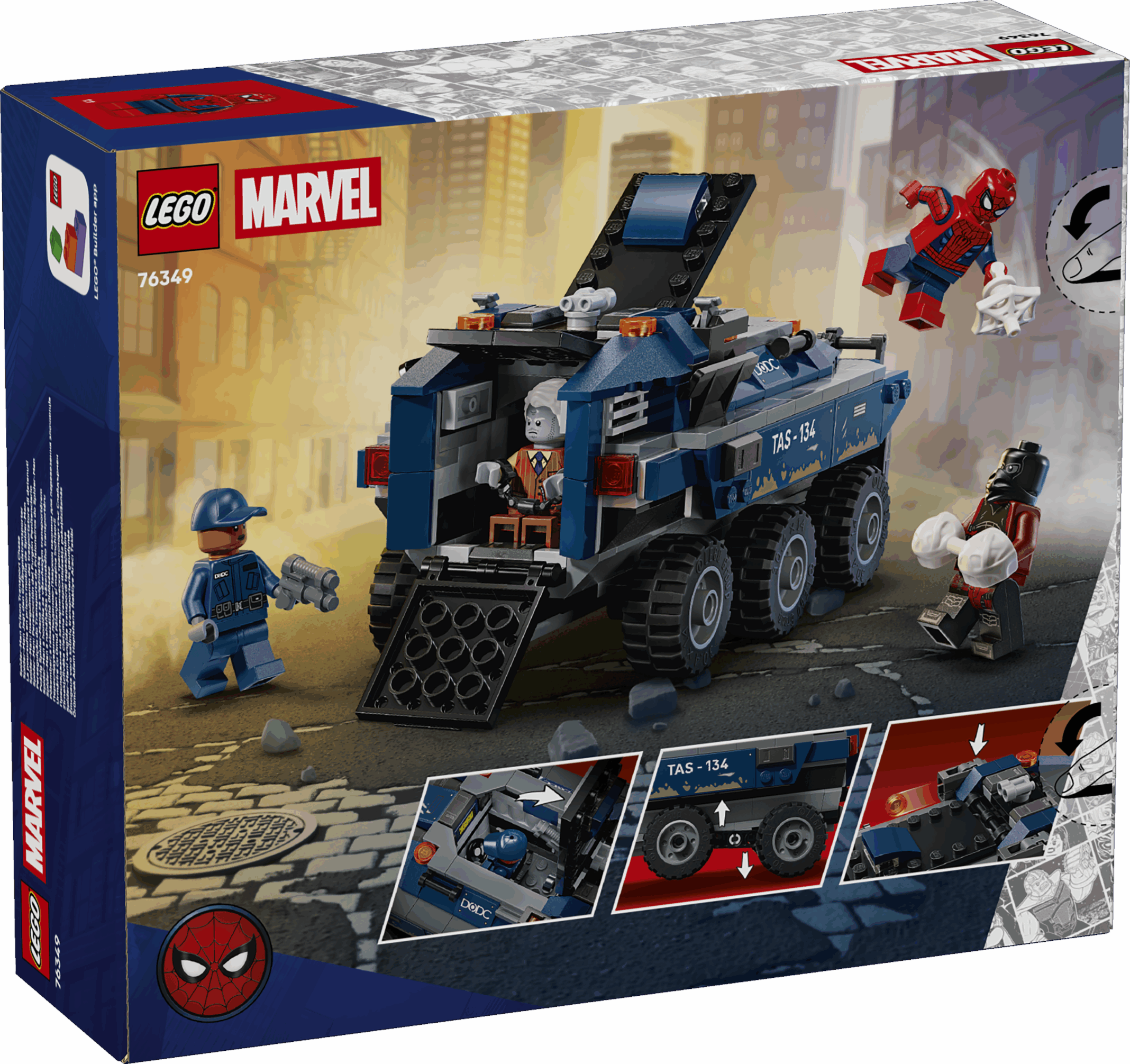 Leap in the cockpit, then race into action with Spider-Man in the mega, 6-wheel prison transporter as you chase down Tombstone and Tarantula! Sling webs, dodge stud blasts and lock the villains in the on-board prison – until their next escape attempt!