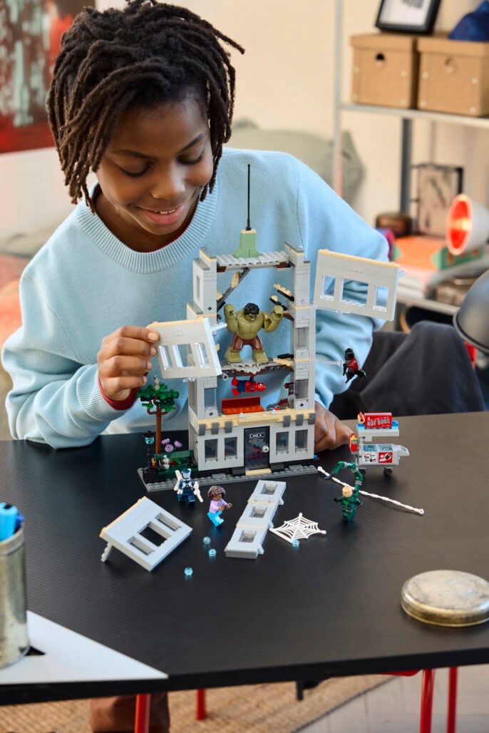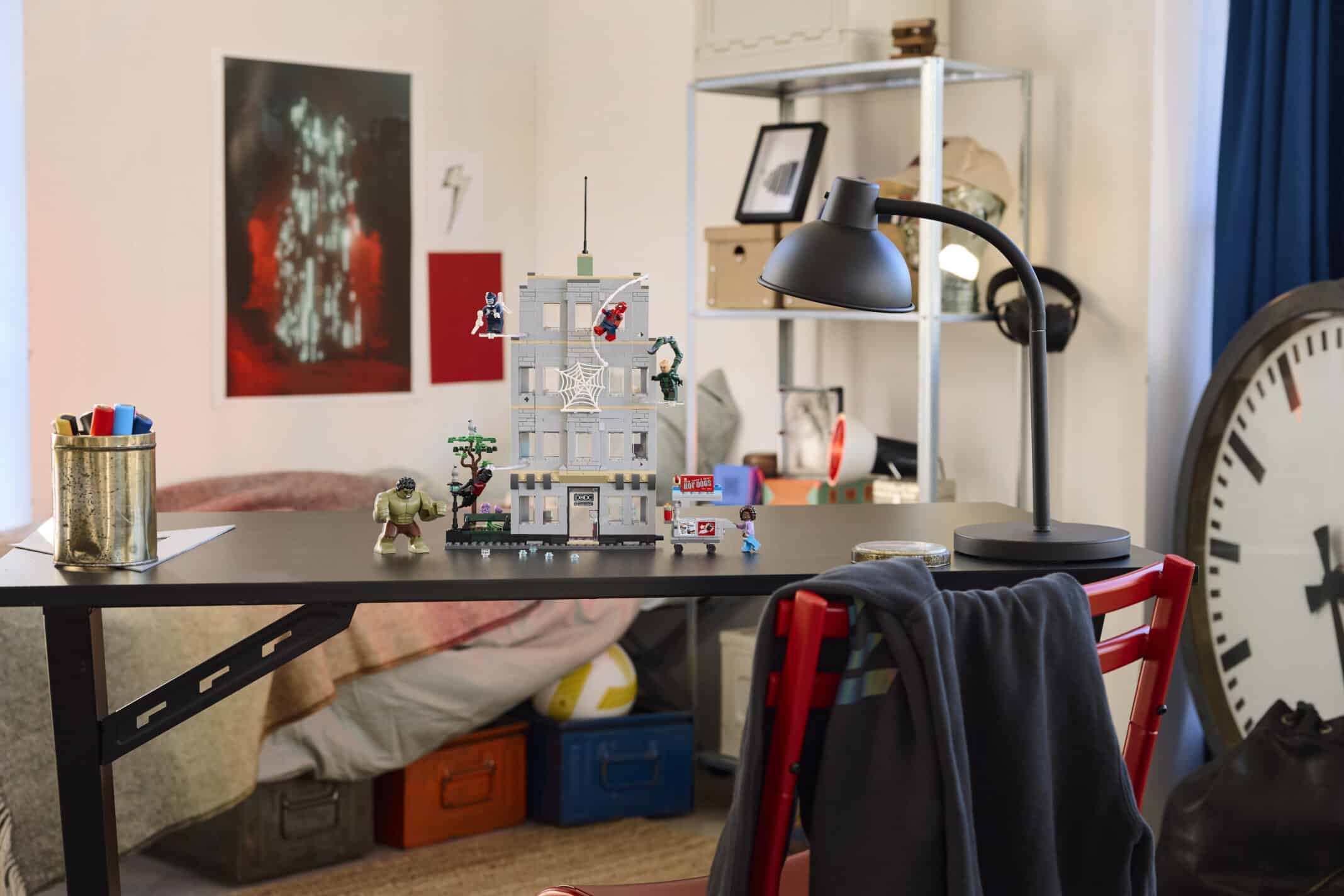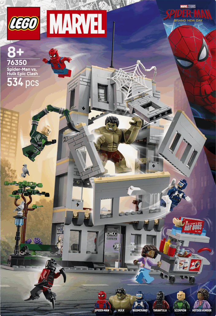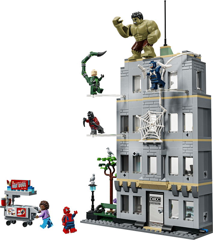 Swing into action as Spider-Man leaps around the towering office building to dodge Tarantula, Scorpion and Boomerang’s attacks. Then Hulk smashes the building into pieces! Grab a snack from the hotdog cart before battle commences! And with Build Together mode in the LEGO® Builder app, your friends and family can join in the creative fun.