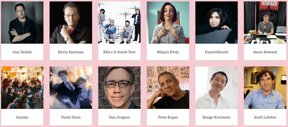 The list continues with other manga artists, including Kei Urana and Hideyoshi Andou, creators of Gachiakuta. Moving beyond comics, some major names from TV series (Stranger Things creators Matt and Ross Duffer, and stars Finn Wolfhard, Gaten Matarazzo, Caleb McLaughlin, Noah Schnapp), video games (Hideo Kojima, creator of milestones such as Metal Gear and Death Stranding; John Romero, father of DOOM and Quake; and Keiichirō Toyama, creator of Silent Hill and Siren), and cinema (director Luc Besson) will also be present.