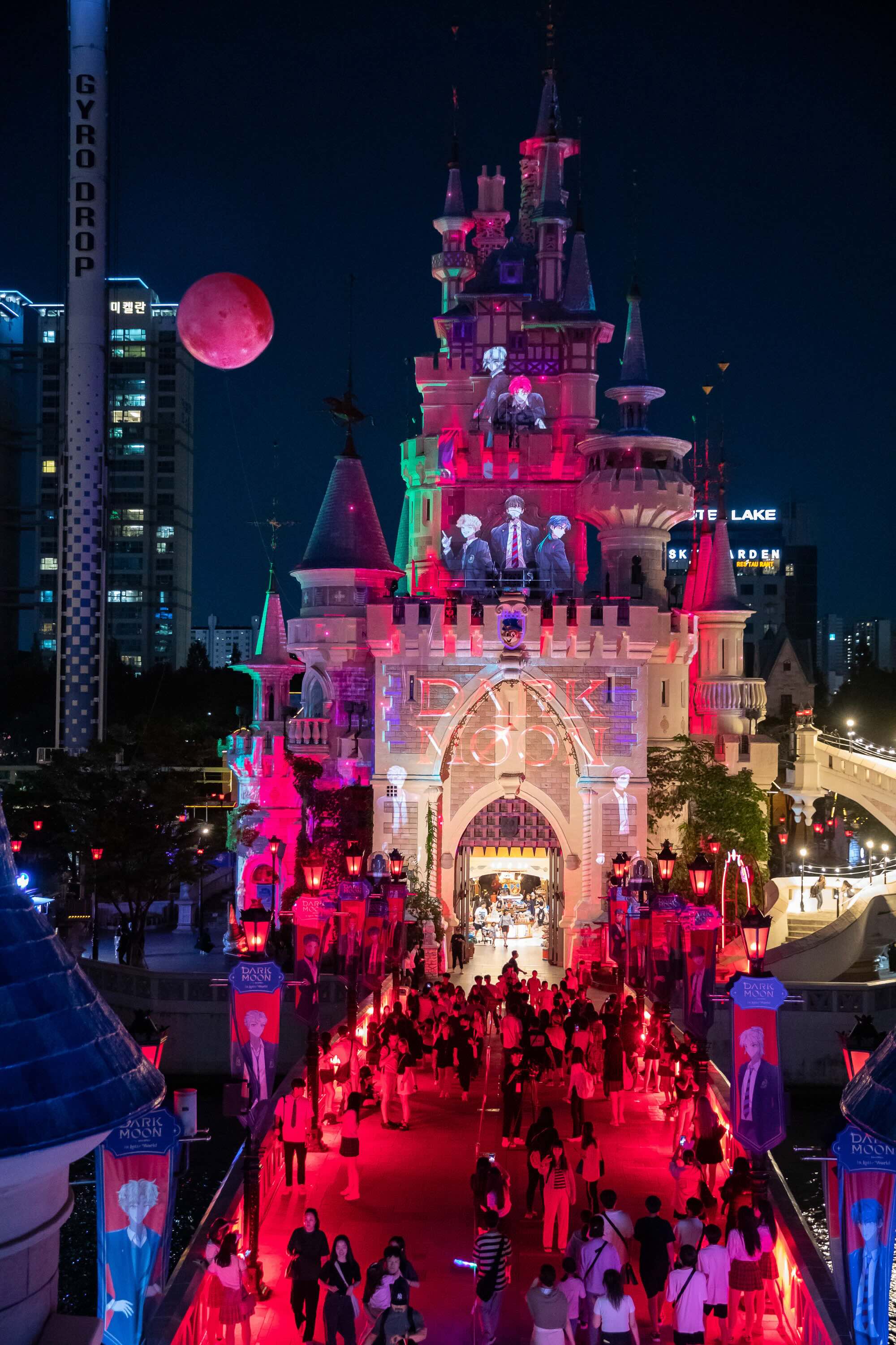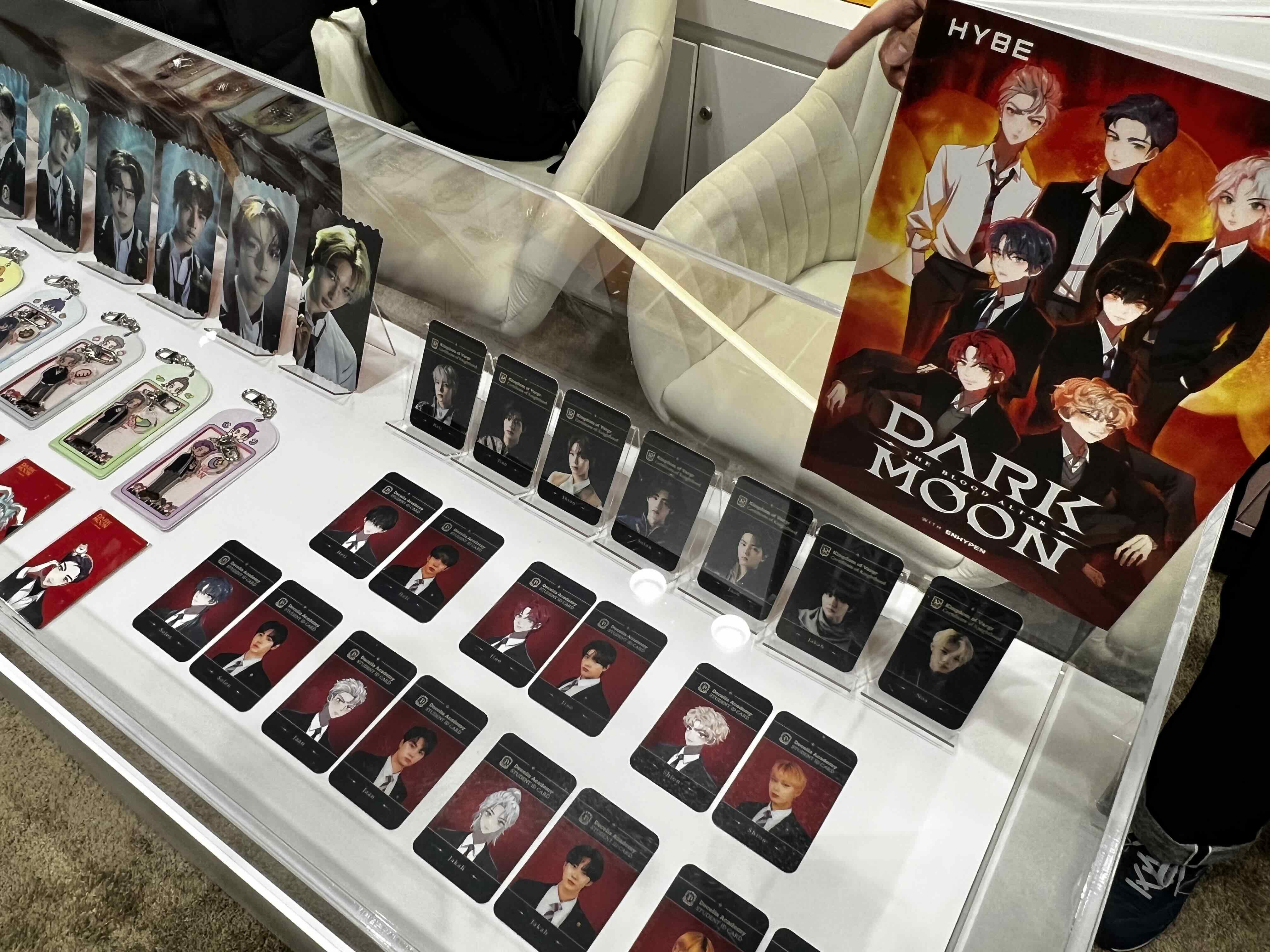 The HYBE team also showed music videos that incorporated animated sequences from the webtoons, along with photos and music videos of Dark Moon, featuring boy band ENHYPHEN as students in a private academy, where the vampire students are pitted against werewolves from a rival school.
