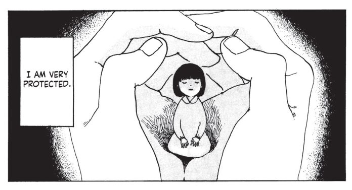 Thanks to TCAF going digital I’ve read the Popocomi East Asian zine gallery scene anthologies from POPOTAME. DENPA put out panpanya’s Guaybano Holiday, which was solemn and surreal in a way I’d experienced reading Drawn and Quarterly. But what I wanted was a Koyama Press book. A rare thing, to tap into both the bare essence of the zine, and the fantasized inner darkness explored in speculative fiction. Why did Shirley Jackson write horror? I found that in Kusahara Umi.