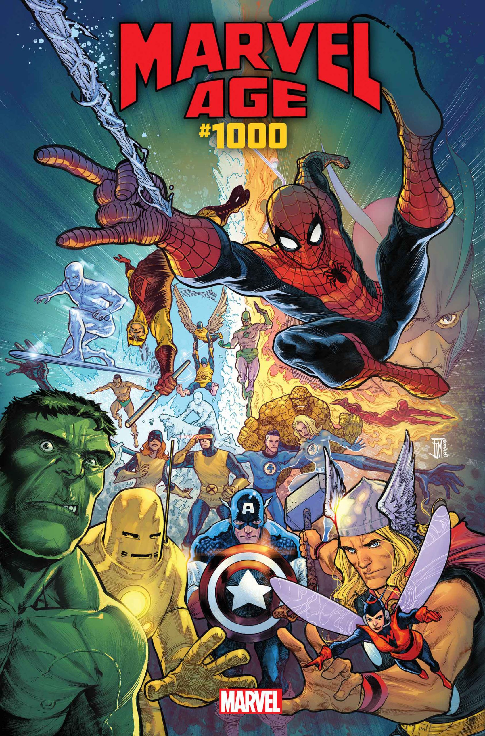 J. Michael Straczynski and Kaare Andrews create the Marvel Universe in a backyard! Dan Slott and Michael Allred depict a crucial turning point for Captain Marvel! Rainbow Rowell and Jamie McKelvie explore the blossoming relationship between Cyclops and Jean Grey! The original Human Torch finds his purpose thanks to Mark Waid and Alessandro Cappuccio! The Silver Surfer confronts Mephisto under the guidance of Steve McNiven! And more, more, more! Plus: The ultimate Marvel Value Stamp, #1000! Who or what will it feature?