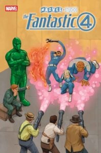 Return to the universe of the legendary film in the first of a series of specials!! On Earth-828, a cosmic mishap has transformed four brave astronauts into the world’s champions and protectors. They are the Fantastic Four – but one person isn’t happy about things. He’s known as the Mad Thinker, and he’s determined to get his proper due by turning the city of tomorrow against its heroic patrons!