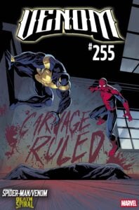 Venom co-creator David Michelinie teams with Jonas Scharf to take us to the jungle, where Venom stalks a vicious paramilitary science outfit bent on weaponizing Eddie Brock’s other! In the aftermath of MAXIMUM CARNAGE, J.M. DeMatteis and Dave Wachter confront Eddie with a painful family matter – and a dark truth! Ryan North and Creees Lee put the “Lethal” in Lethal Protector as Venom helps a kid get revenge! The legendary Erik Larsen reveals an untold skirmish between Spider-Man and Venom from the early days of their rivalry! Karla Pacheco teams up with Pere Pérez to dive back into Eddie’s secret-agent days! Tom Waltz and Brian Level pit fan-favorite former host “Flash” Thompson against the incendiary Jack O’Lantern! Chris Bachalo rings in the holiday season with Christmas in New York as only Venom could experience it! And more! Collecting VENOM: BLACK, WHITE & BLOOD (2025) #1-4.