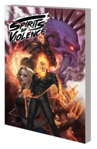 When a strange group of new villains sets their sinister plan in motion, Johnny Blaze, Danny Ketch, Robbie Reyes, Kushala, Fantasma, Hellverine and more must combine forces to save the world. But just who is the Spirit of Violence, and what horrors do they bring from Johnny Blaze’s and Danny Ketch’s pasts? Forget everything you thought you knew about Ghost Rider and get ready for your favorite flaming-skulled furies to know torment – none more so than Johnny Blaze! Torn apart literally, metaphorically and otherwise, Blaze may not make it out of this titanic tale alive! This one is not for the faint of heart! Collecting SPIRITS OF VIOLENCE (2025) #1-5.
