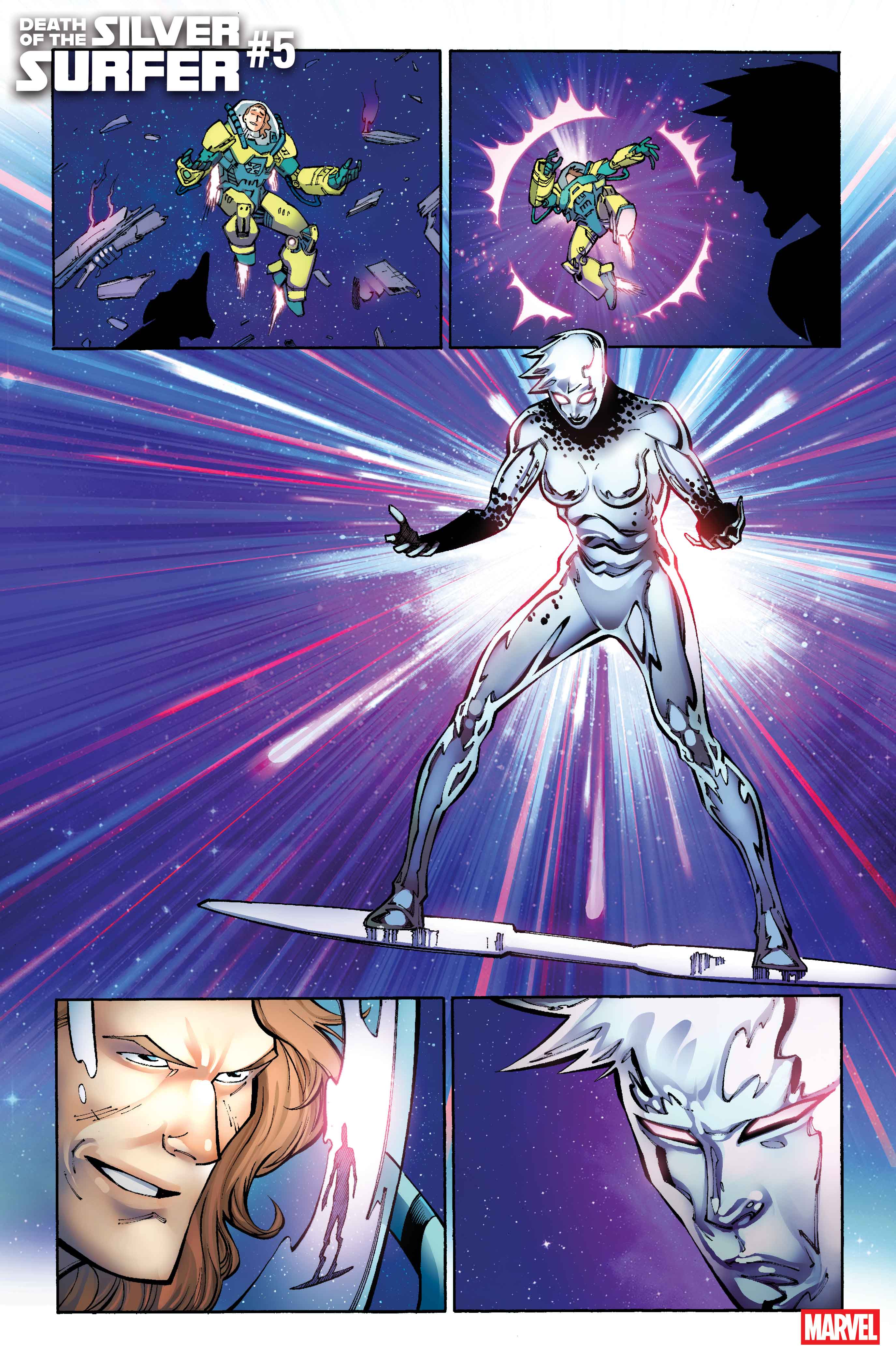 “The Silver Surfer has always been famously one of Marvel’s most emotionally tormented characters, and Kelly with the Power Cosmic absolutely follows in that tradition, ha ha!,” writer Greg Pak shared. “But she’s also got a no-nonsense, cocky, dangerous edge that makes her much less predictable than Norrin and a huge challenge to the villains—and heroes!—of the Marvel Universe. Dontcha dare miss DEATH OF THE SILVER SURFER #5 to see what’s next for both Norrin and Kelly — and the Power Cosmic!”