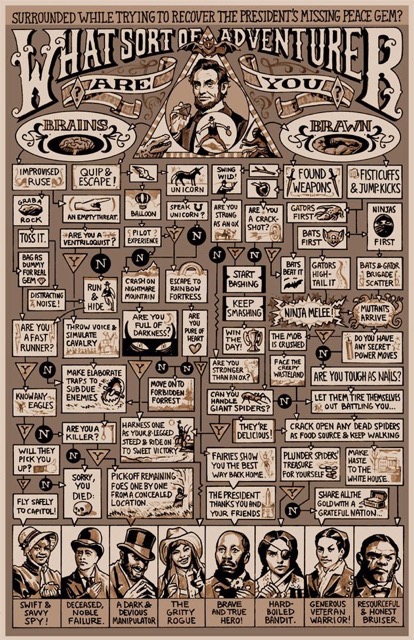 I do a ton of work and experimenting in my sketchbooks and on the actual page. It’s surprisingly difficult to keep track of all the strands. The toughest thing is when you do a decision tree that involves a thing other people know well. I helped my friend Terry Blas lay out a Drag Race themed chart and it was hard because we knew that it had to make sense to the most dedicated fans of the show. The one I’m working on now has to make sense to hardcore D&D nerds and to new players alike because it’s meant to help people choose the class for their character. At one point I wanted to do them as a regular feature for a webcomic called “epic choices” but I’d end up with 6 a year at the rate I’m currently able to do them. I get why other people haven’t made them.
