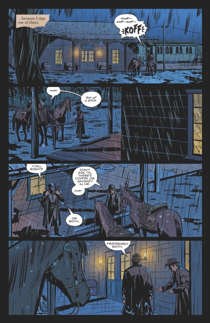 Then we caught a huge lucky break on Bandits, getting Chris O’Halloran on board for colors…he has some experience with westerns, so we knew he’d bring something textural and special, and help differentiate the shuffling timeline stuff in the story. And Hassan Otsmane-Elhaou is a damn lettering dynamo (we were fortunate to get him BEFORE he won an Eisner…I’m sure he wouldn’t answer our calls if we tried to get him today).