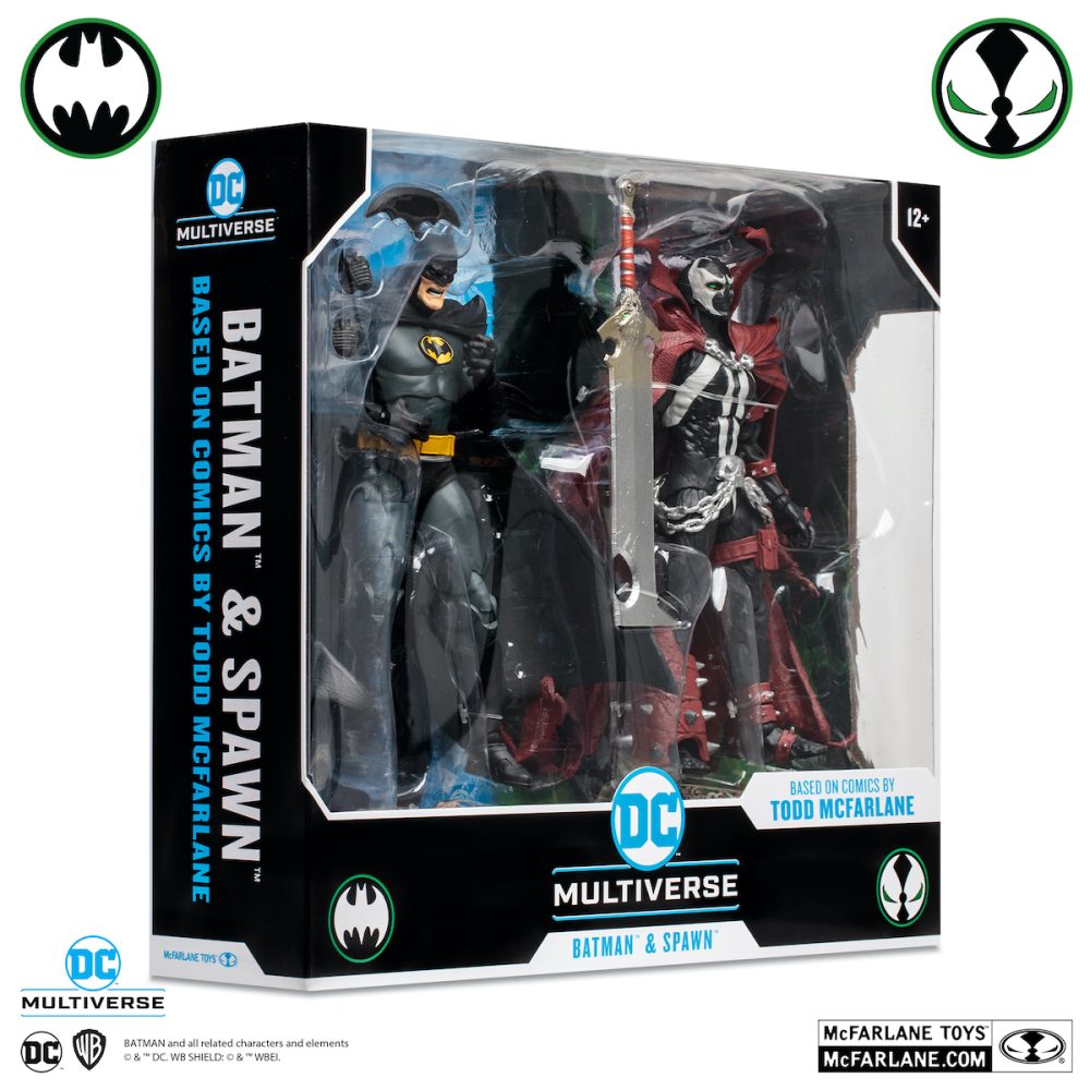 McFarlane Toys yesterday revealed the latest entry in their DC Multiverse line of action figures, and it’s a team-up of epic proportions. The new Batman & Spawn two-pack will feature 7″ figures of the Dark Knight and, for the first time in the Multiverse style, McFarlane’s signature creation, both based on the artwork of McFarlane from multiple crossover stories between the two characters.